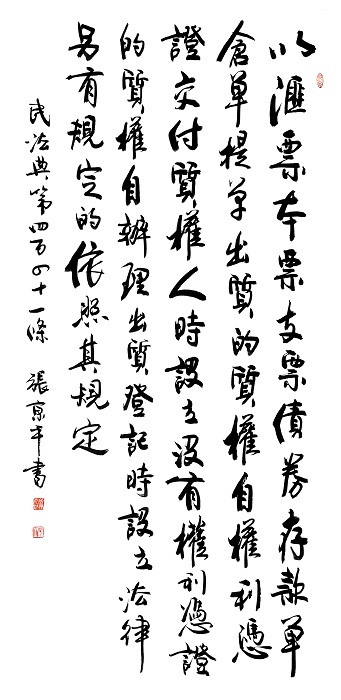 民法典第四百四十一條 以匯票、本票、支票、債券、存款單、倉單、提單出質(zhì)的,質(zhì)權自權利憑證交付質(zhì)權人時設立;沒有權利憑證的,質(zhì)權自辦理出質(zhì)登記時設立。法律另有規(guī)定的,依照其規(guī)定。