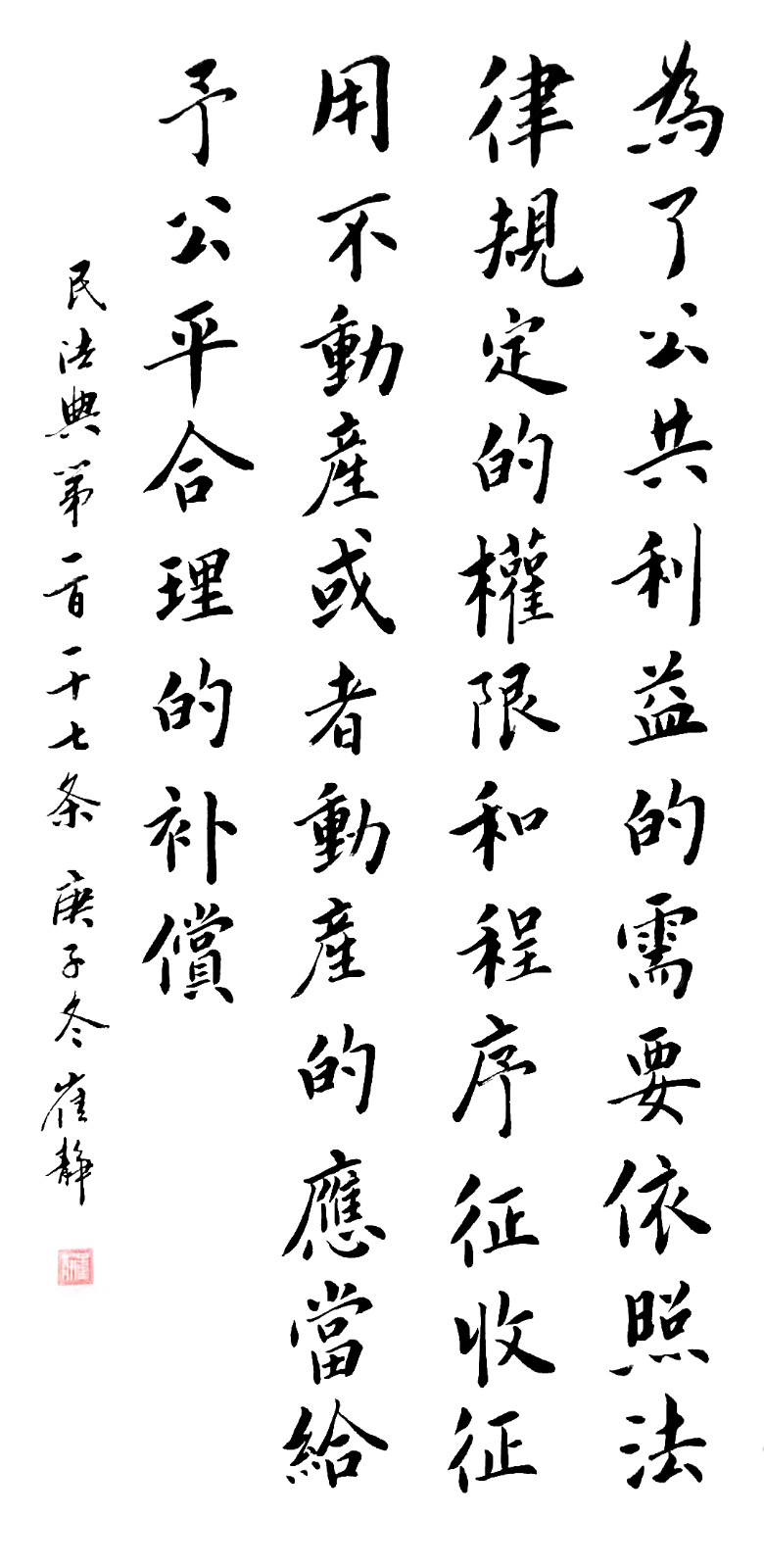 民法典第一百一十七條 為了公共利益的需要,依照法律規(guī)定的權(quán)限和程序征收、征用不動產(chǎn)或者動產(chǎn)的,應(yīng)當給予公平、合理的補償。