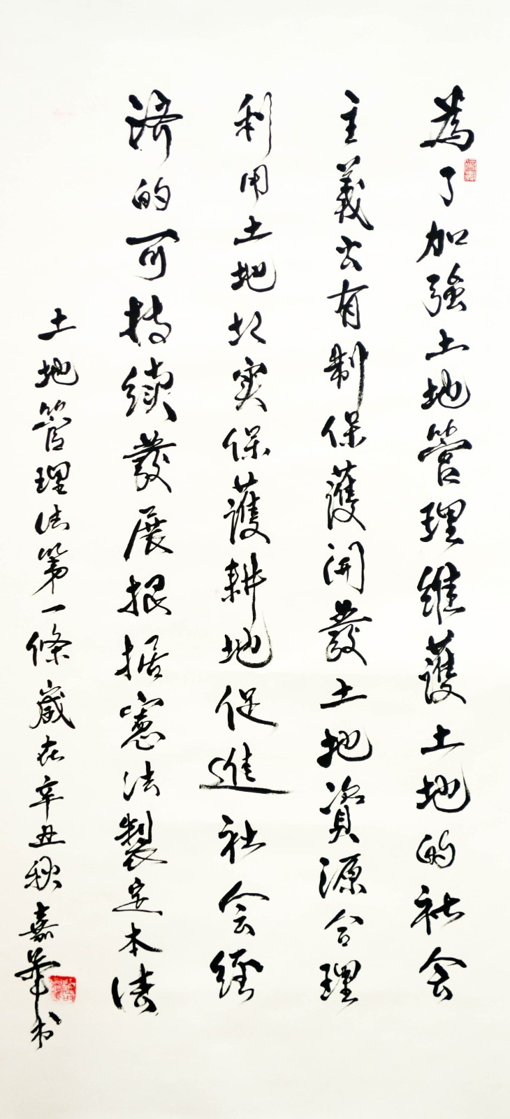 繼1600余位書法家參與書寫《中華人民共和國(guó)民法典》全部1260條法條之后,法治日?qǐng)?bào)社聯(lián)合自然資源部法規(guī)司、自然資源部書畫研究會(huì)和北京昌平書法家協(xié)會(huì),將筆端對(duì)準(zhǔn)土地管理“一法一條例”,即《中華人民共和國(guó)土地管理法》和《中華人民共和國(guó)土地管理法實(shí)施條例》。
