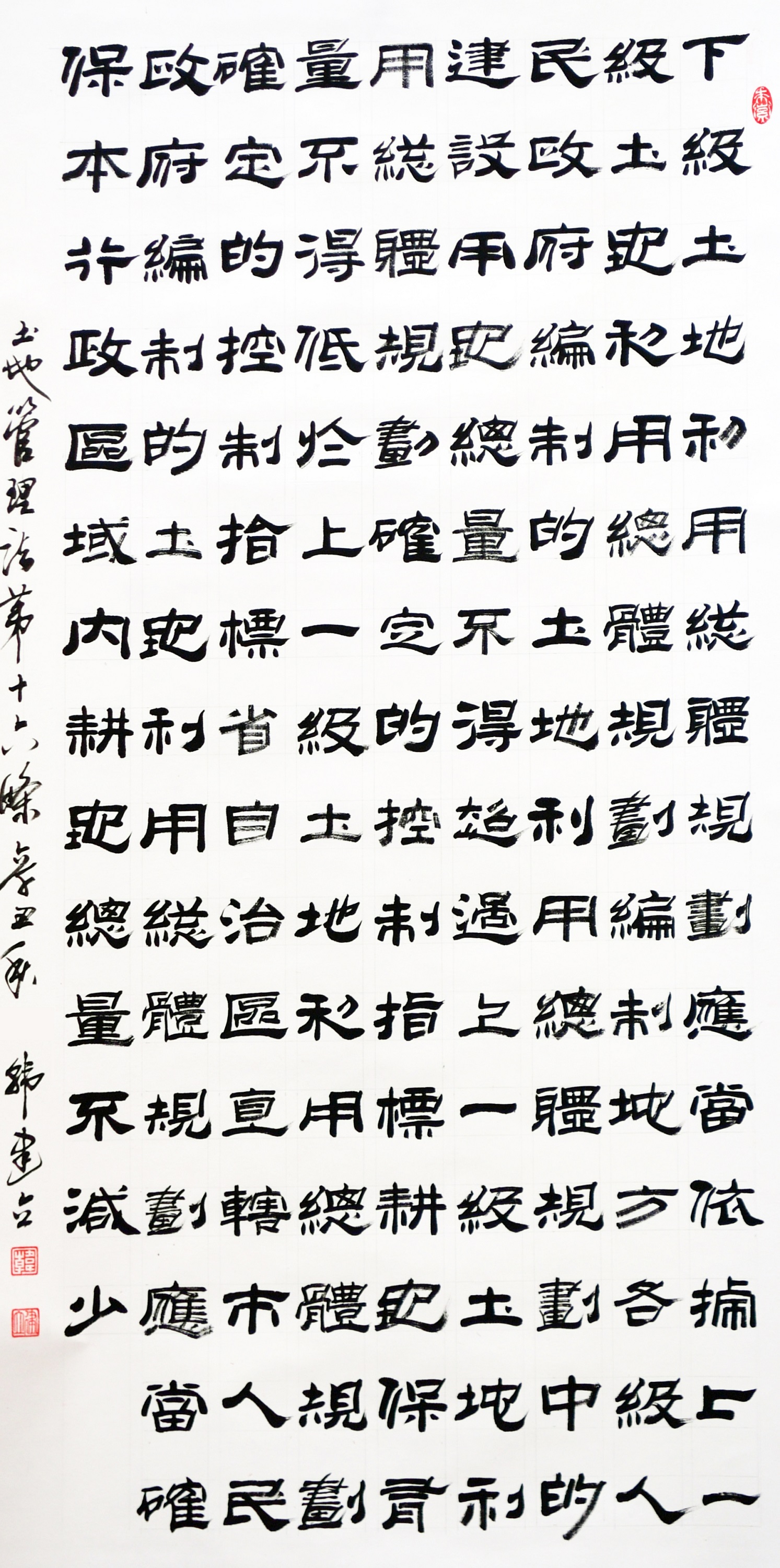 繼1600余位書法家參與書寫《中華人民共和國民法典》全部1260條法條之后,法治日報社聯(lián)合自然資源部法規(guī)司、自然資源部書畫研究會和北京昌平書法家協(xié)會,將筆端對準(zhǔn)土地管理“一法一條例”,即《中華人民共和國土地管理法》和《中華人民共和國土地管理法實施條例》。