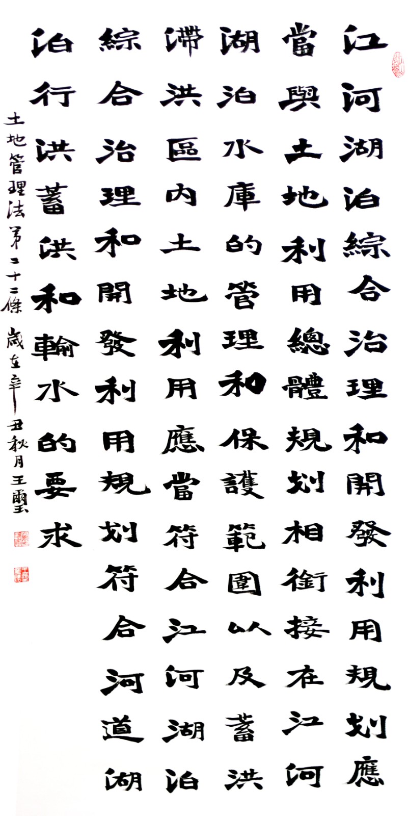 繼1600余位書(shū)法家參與書(shū)寫(xiě)《中華人民共和國(guó)民法典》全部1260條法條之后,法治日?qǐng)?bào)社聯(lián)合自然資源部法規(guī)司、自然資源部書(shū)畫(huà)研究會(huì)和北京昌平書(shū)法家協(xié)會(huì),將筆端對(duì)準(zhǔn)土地管理“一法一條例”,即《中華人民共和國(guó)土地管理法》和《中華人民共和國(guó)土地管理法實(shí)施條例》。