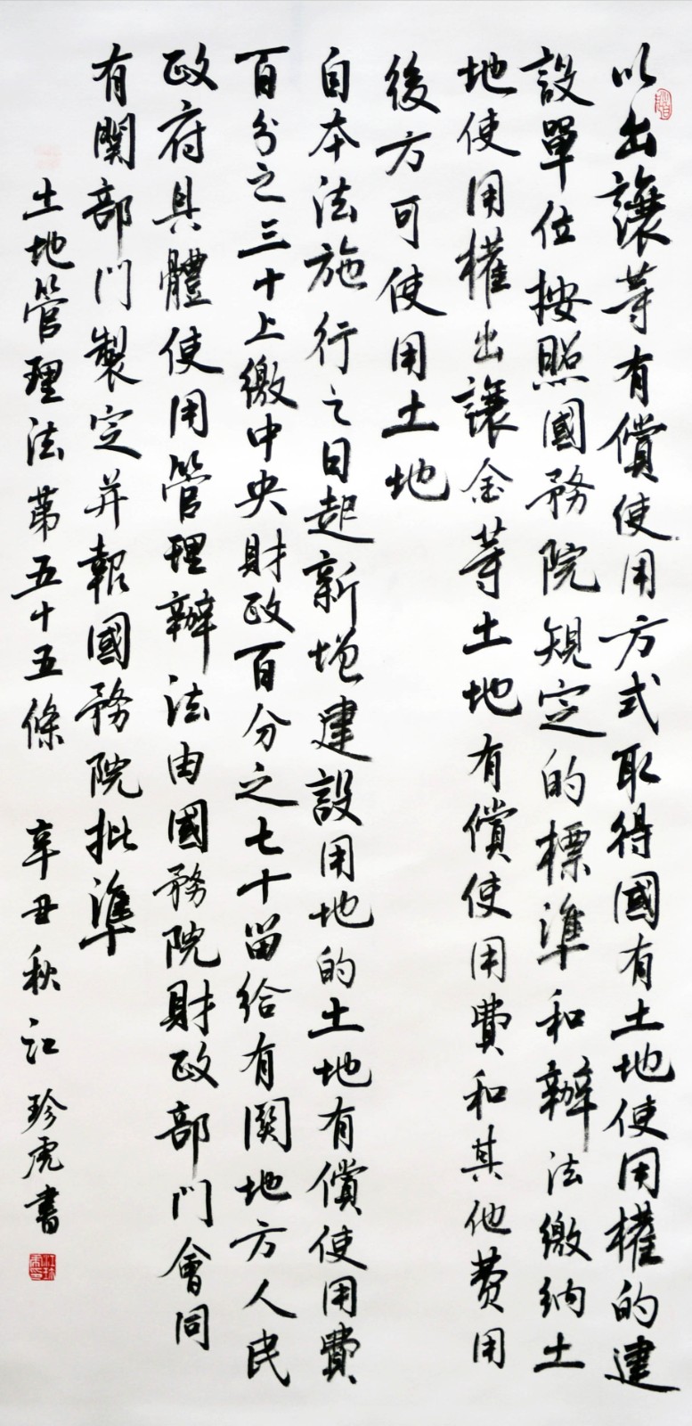 繼1600余位書法家參與書寫《中華人民共和國民法典》全部1260條法條之后,法治日報社聯(lián)合自然資源部法規(guī)司、自然資源部書畫研究會和北京昌平書法家協(xié)會,將筆端對準(zhǔn)土地管理“一法一條例”,即《中華人民共和國土地管理法》和《中華人民共和國土地管理法實施條例》。