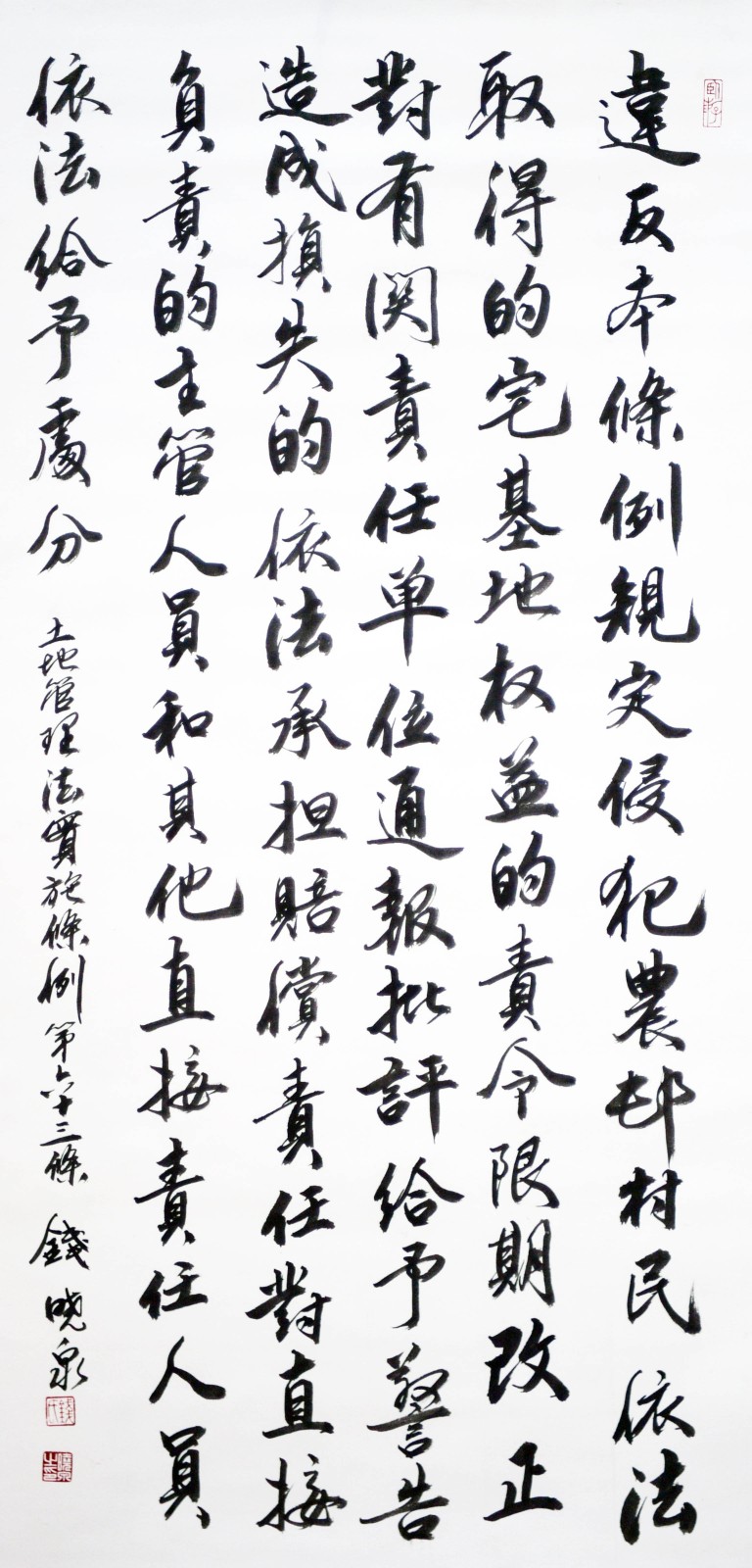 繼1600余位書(shū)法家參與書(shū)寫(xiě)《中華人民共和國(guó)民法典》全部1260條法條之后,法治日?qǐng)?bào)社聯(lián)合自然資源部法規(guī)司、自然資源部書(shū)畫(huà)研究會(huì)和北京昌平書(shū)法家協(xié)會(huì),將筆端對(duì)準(zhǔn)土地管理“一法一條例”,即《中華人民共和國(guó)土地管理法》和《中華人民共和國(guó)土地管理法實(shí)施條例》。