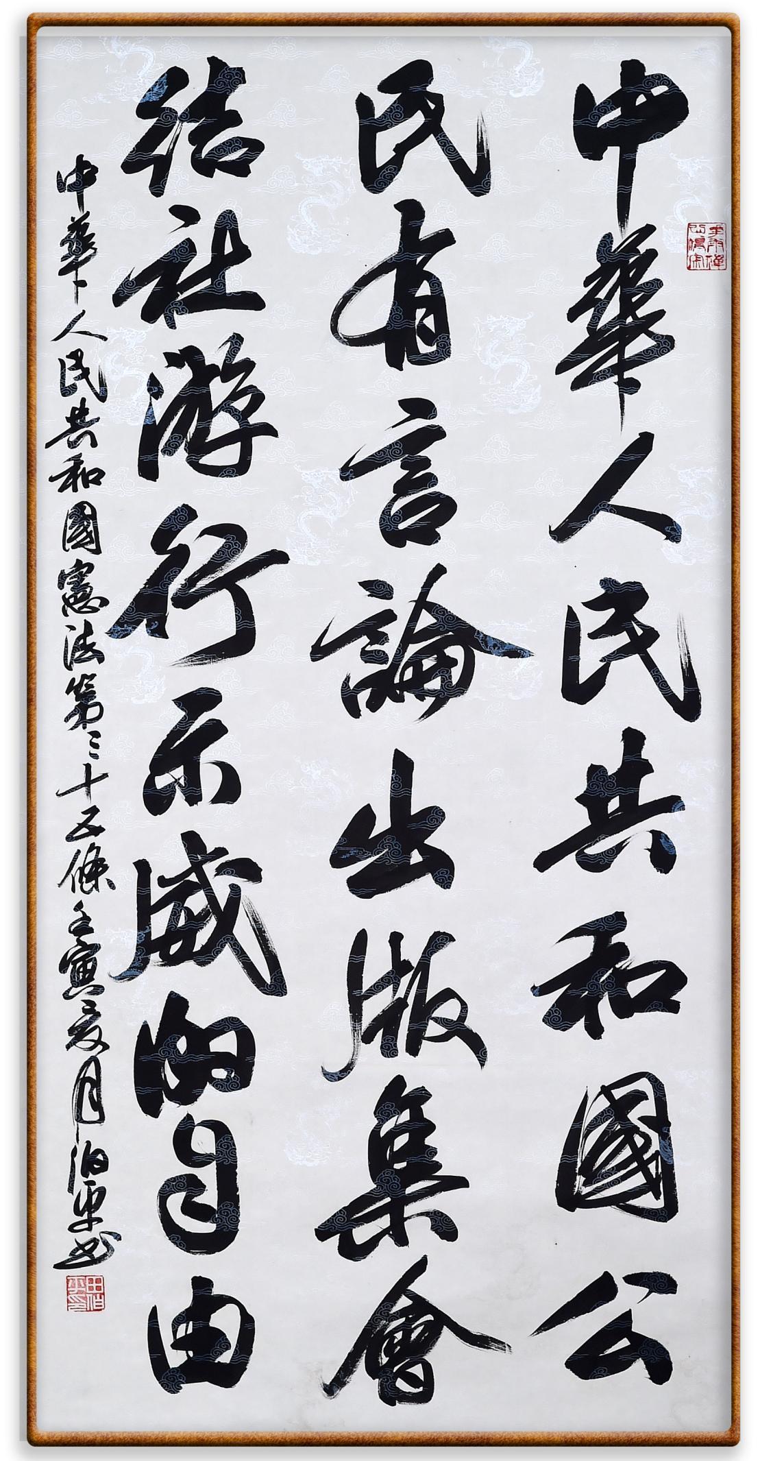 繼《中華人民共和國民法典》《中華人民共和國土地管理法》《中華人民共和國土地管理法實施條例》《中華人民共和國法律援助法》之后,法治日報社聯(lián)合北京市司法局、北京市書法家協(xié)會,將筆端對準《中華人民共和國憲法》和《中華人民共和國行政處罰法》。