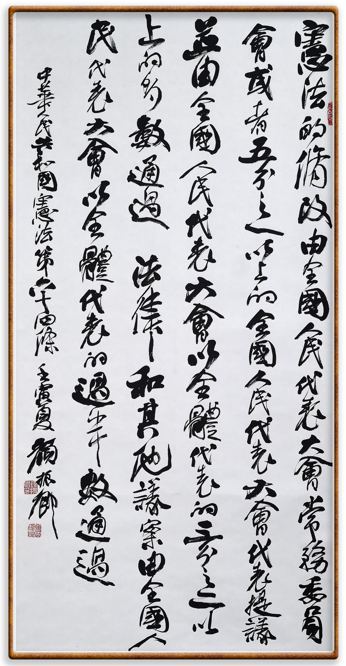 繼《中華人民共和國(guó)民法典》《中華人民共和國(guó)土地管理法》《中華人民共和國(guó)土地管理法實(shí)施條例》《中華人民共和國(guó)法律援助法》之后,法治日?qǐng)?bào)社聯(lián)合北京市司法局、北京書法家協(xié)會(huì),將筆端對(duì)準(zhǔn)《中華人民共和國(guó)憲法》和《中華人民共和國(guó)行政處罰法》。