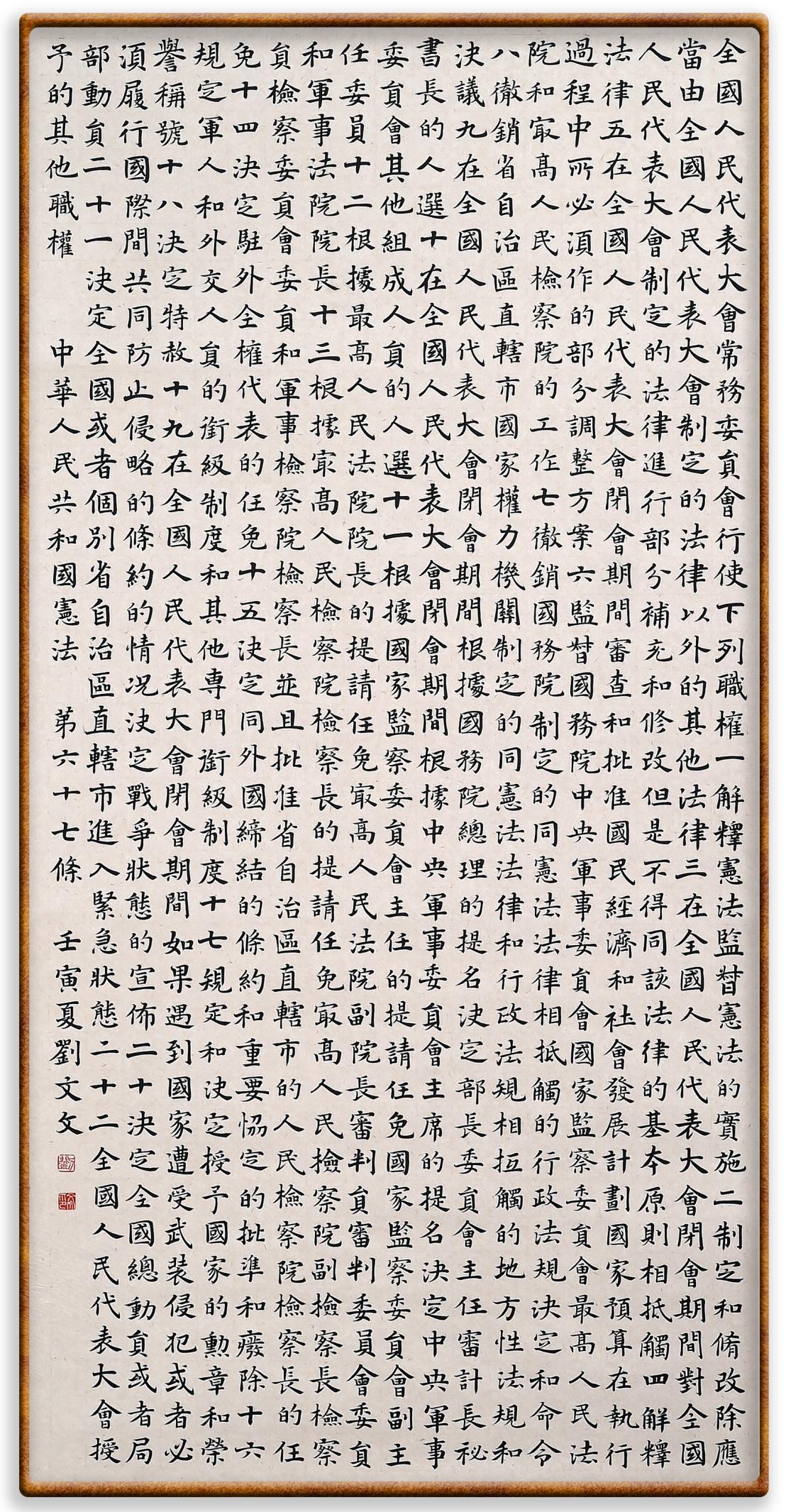 繼《中華人民共和國(guó)民法典》《中華人民共和國(guó)土地管理法》《中華人民共和國(guó)土地管理法實(shí)施條例》《中華人民共和國(guó)法律援助法》之后,法治日?qǐng)?bào)社聯(lián)合北京市司法局、北京書法家協(xié)會(huì),將筆端對(duì)準(zhǔn)《中華人民共和國(guó)憲法》和《中華人民共和國(guó)行政處罰法》。