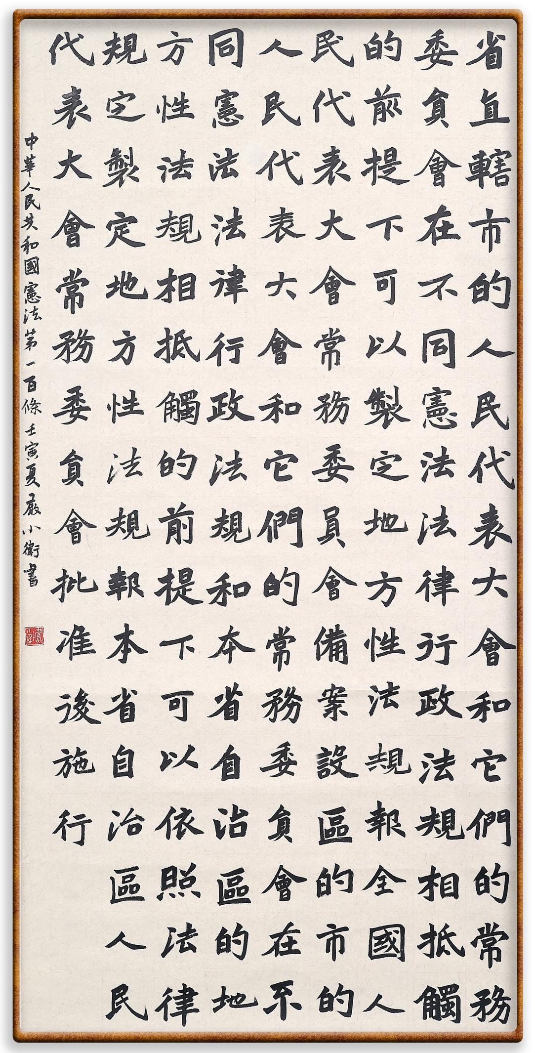 繼《中華人民共和國民法典》《中華人民共和國土地管理法》《中華人民共和國土地管理法實施條例》《中華人民共和國法律援助法》之后,法治日報社聯(lián)合北京市司法局、北京書法家協(xié)會,將筆端對準(zhǔn)《中華人民共和國憲法》和《中華人民共和國行政處罰法》。