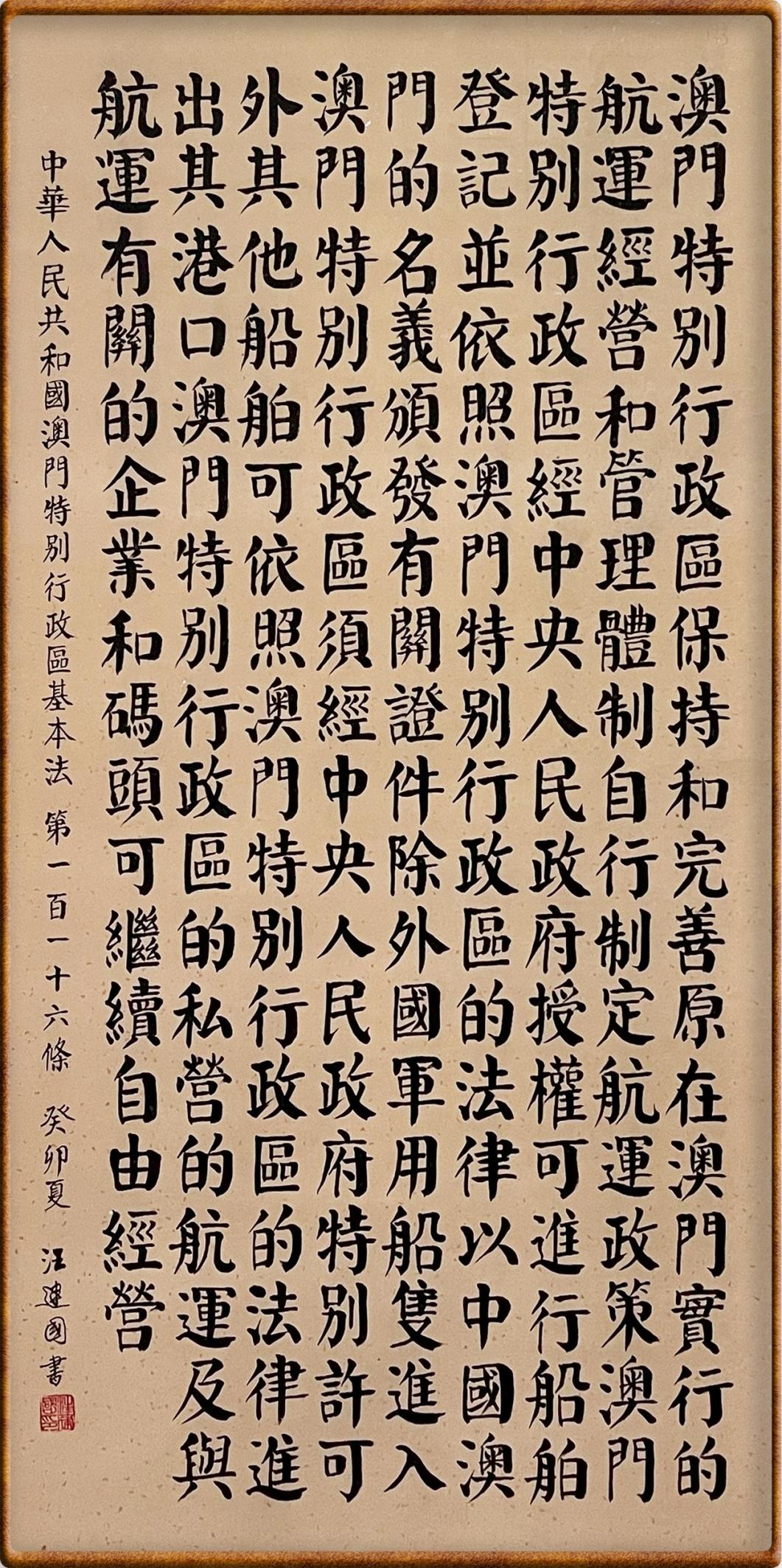 澳門基本法第一百一十六條 澳門特別行政區(qū)保持和完善原在澳門實(shí)行的航運(yùn)經(jīng)營和管理體制,自行制定航運(yùn)政策。