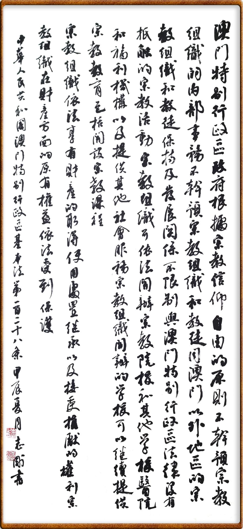 澳門(mén)基本法第一百二十八條 澳門(mén)特別行政區(qū)政府根據(jù)宗教信仰自由的原則,不干預(yù)宗教組織的內(nèi)部事務(wù),不干預(yù)宗教組織和教徒同澳門(mén)以外地區(qū)的宗教組織和教徒保持及發(fā)展關(guān)系,不限制與澳門(mén)特別行政區(qū)法律沒(méi)有抵觸的宗教活動(dòng)。