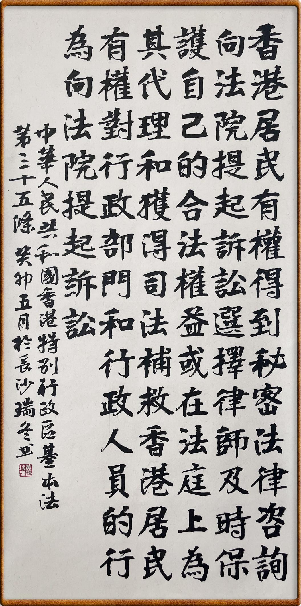 香港基本法第三十五條 香港居民有權(quán)得到秘密法律咨詢、向法院提起訴訟、選擇律師及時保護自己的合法權(quán)益或在法庭上為其代理和獲得司法補救。
