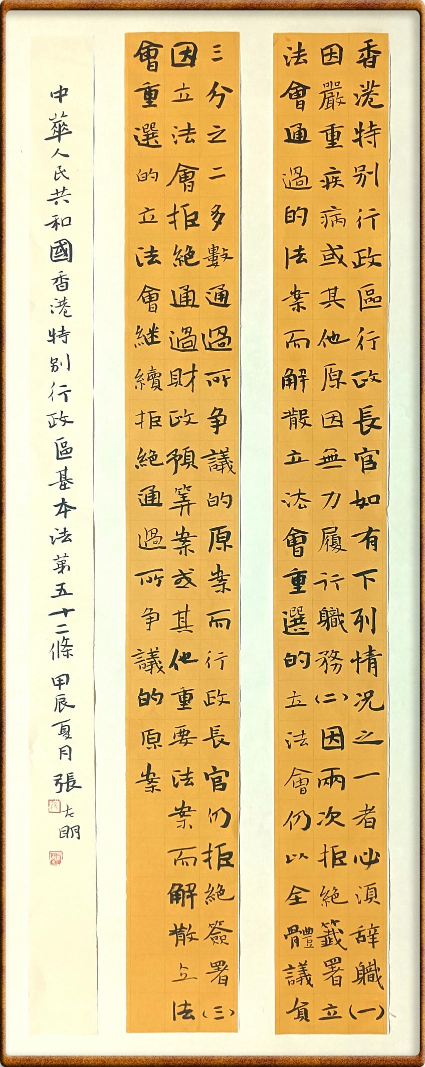 (三)因立法會拒絕通過財(cái)政預(yù)算案或其他重要法案而解散立法會,重選的立法會繼續(xù)拒絕通過所爭議的原案。
