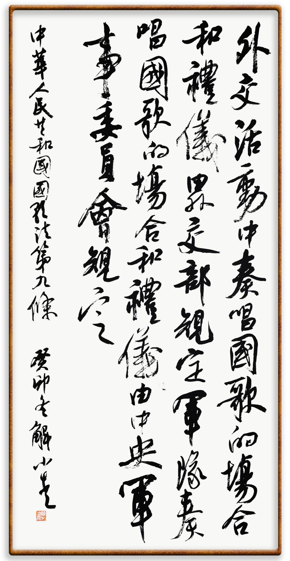 國歌法第九條 外交活動中奏唱國歌的場合和禮儀,由外交部規(guī)定。