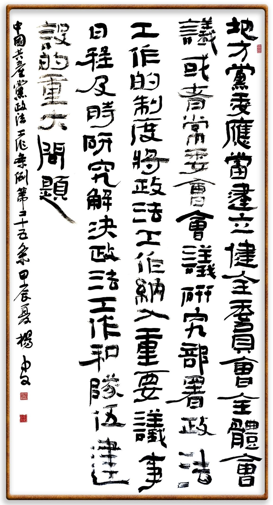 《中國共產(chǎn)黨政法工作條例》對黨領(lǐng)導(dǎo)新時代政法工作進行全面制度擘畫,為黨領(lǐng)導(dǎo)政法工作提供基本遵循,具有重大而深遠的意義。為學(xué)習(xí)好、宣傳好、貫徹好、實施好這部黨內(nèi)法規(guī),繼《中華人民共和國民法典》《中華人民共和國憲法》《信訪工作條例》《中華人民共和國澳門特別行政區(qū)基本法》《中華人民共和國香港特別行政區(qū)基本法》等法律法規(guī)之后,“書·法”系列活動將筆端對準(zhǔn)《中國共產(chǎn)黨政法工作條例》。