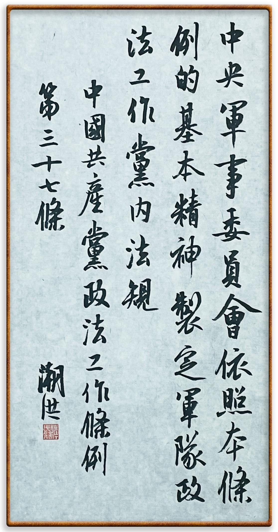 《中國(guó)共產(chǎn)黨政法工作條例》對(duì)黨領(lǐng)導(dǎo)新時(shí)代政法工作進(jìn)行全面制度擘畫(huà),為黨領(lǐng)導(dǎo)政法工作提供基本遵循,具有重大而深遠(yuǎn)的意義。為學(xué)習(xí)好、宣傳好、貫徹好、實(shí)施好這部黨內(nèi)法規(guī),繼《中華人民共和國(guó)民法典》《中華人民共和國(guó)憲法》《信訪(fǎng)工作條例》《中華人民共和國(guó)澳門(mén)特別行政區(qū)基本法》《中華人民共和國(guó)香港特別行政區(qū)基本法》等法律法規(guī)之后,“書(shū)·法”系列活動(dòng)將筆端對(duì)準(zhǔn)《中國(guó)共產(chǎn)黨政法工作條例》。