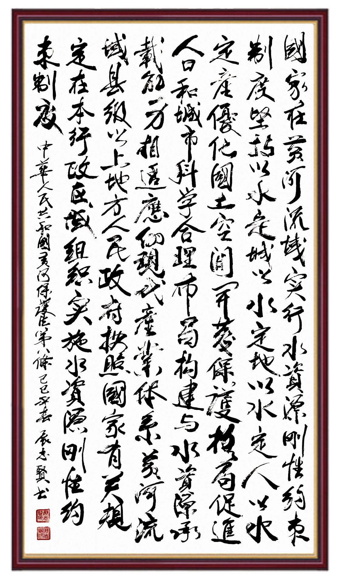黃河寧,天下平。黃河是中華民族的發(fā)源地和搖籃,保護(hù)黃河是事關(guān)中華民族偉大復(fù)興的千秋大計(jì)?!吨腥A人民共和國黃河保護(hù)法》為推進(jìn)水資源節(jié)約集約利用、保護(hù)傳承弘揚(yáng)黃河文化、推動黃河流域生態(tài)保護(hù)和高質(zhì)量發(fā)展提供了有力法治保障。繼書寫《中華人民共和國民法典》《中華人民共和國憲法》《中華人民共和國澳門特別行政區(qū)基本法》《中華人民共和國香港特別行政區(qū)基本法》《中華人民共和國國旗法》《中華人民共和國國徽法》《中華人民共和國國歌法》《中華人民共和國法官法》等法律法規(guī)之后,法制日報(bào)社聯(lián)合沿黃九?。▍^(qū))司法廳、書法家協(xié)會,將筆端對準(zhǔn)《中華人民共和國黃河保護(hù)法》。