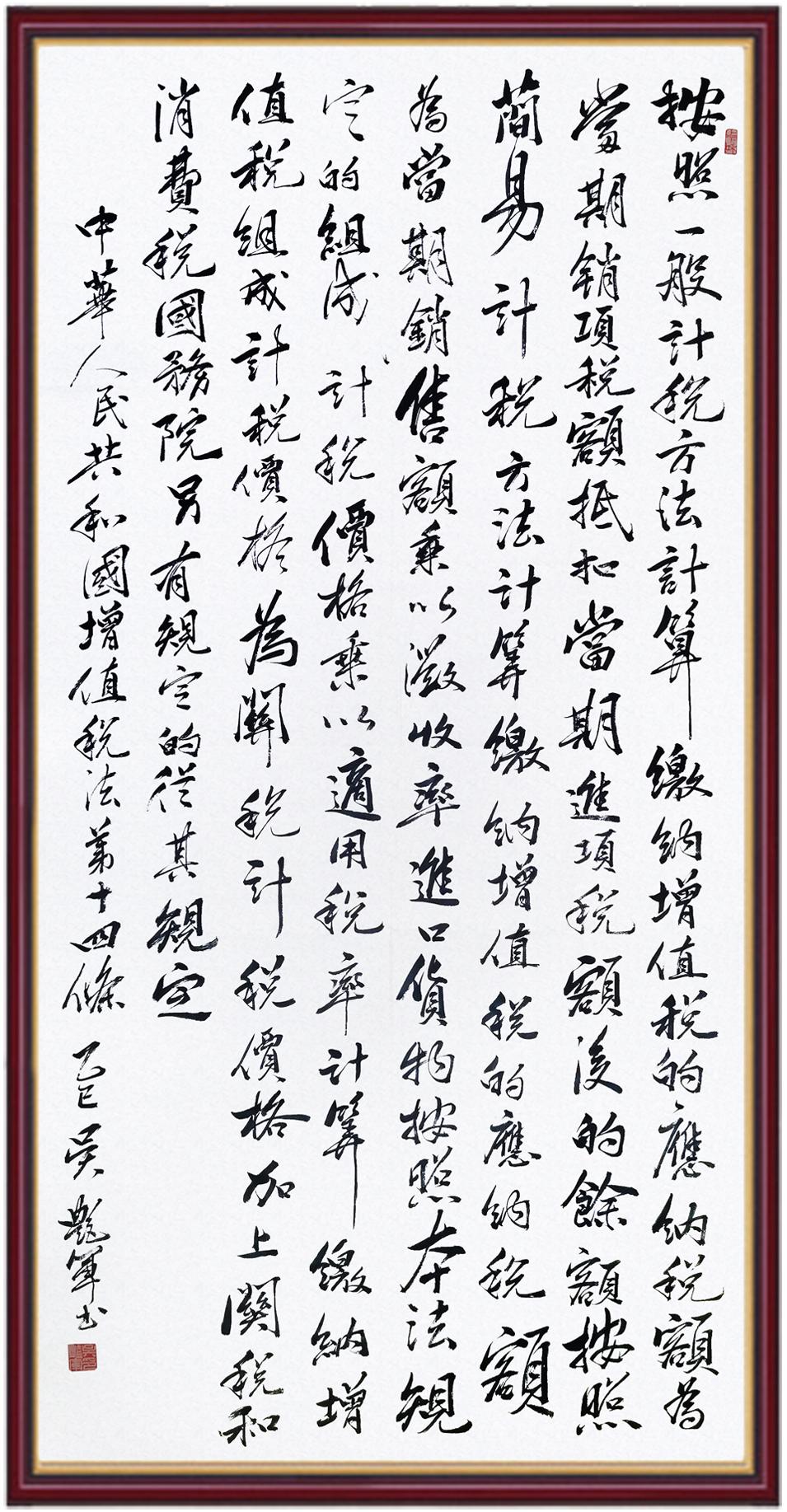 增值稅法第十四條 按照一般計(jì)稅方法計(jì)算繳納增值稅的,應(yīng)納稅額為當(dāng)期銷項(xiàng)稅額抵扣當(dāng)期進(jìn)項(xiàng)稅額后的余額。