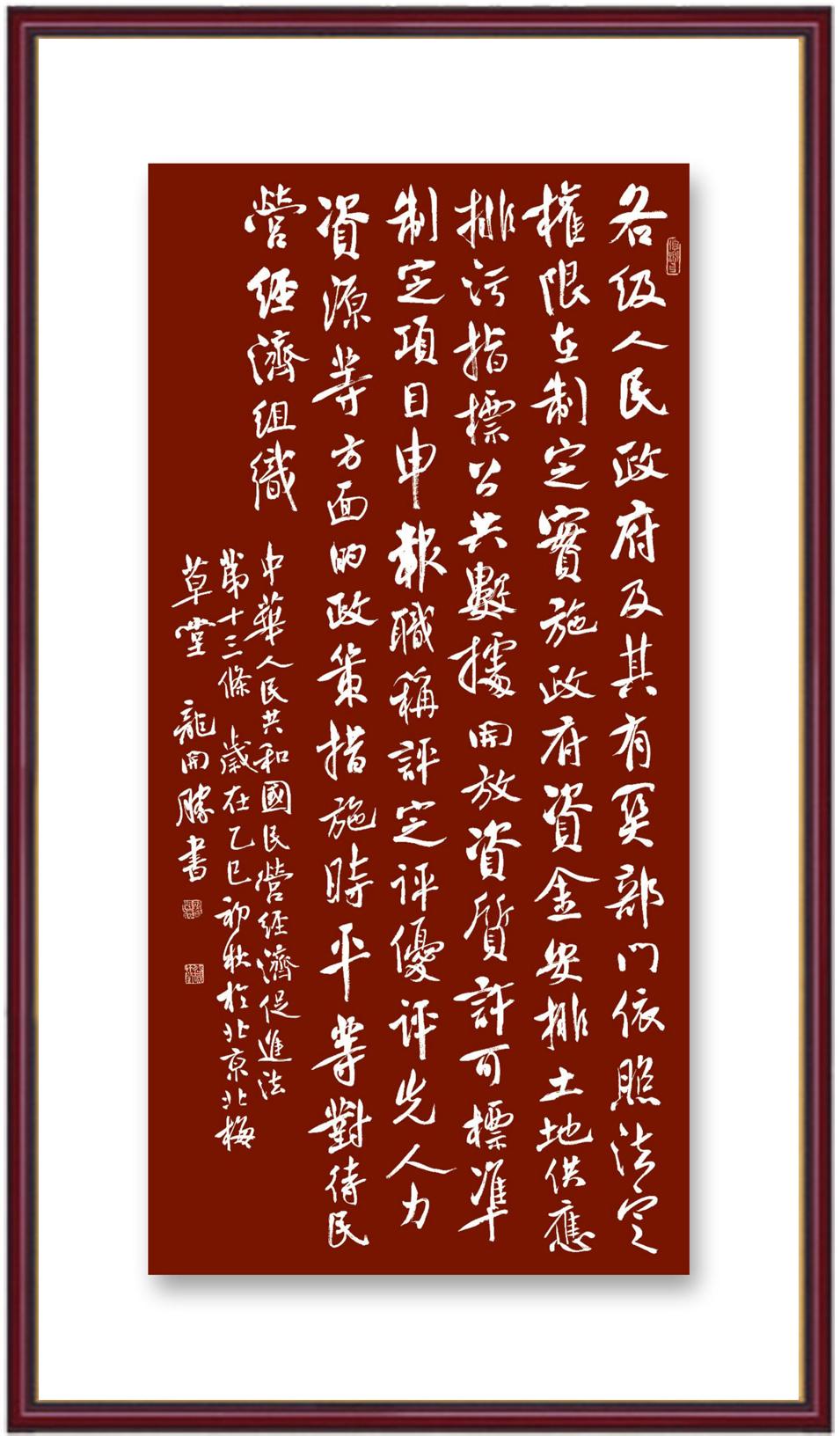 《中華人民共和國民營經(jīng)濟促進(jìn)法》自今年5月20日起施行。作為我國首部專門關(guān)于民營經(jīng)濟發(fā)展的基礎(chǔ)性法律,民營經(jīng)濟促進(jìn)法將支持和保障民營經(jīng)濟發(fā)展的法律制度融入中國特色社會主義法律體系,具有重大的法治意義,為促進(jìn)民營經(jīng)濟持續(xù)、健康、高質(zhì)量發(fā)展提供了堅實的法治保障。為更好地學(xué)習(xí)、宣傳、貫徹這部法律,法治日報社聯(lián)合司法部普法與依法治理局,開展“‘書·法’系列活動之書寫《中華人民共和國民營經(jīng)濟促進(jìn)法》”活動。
