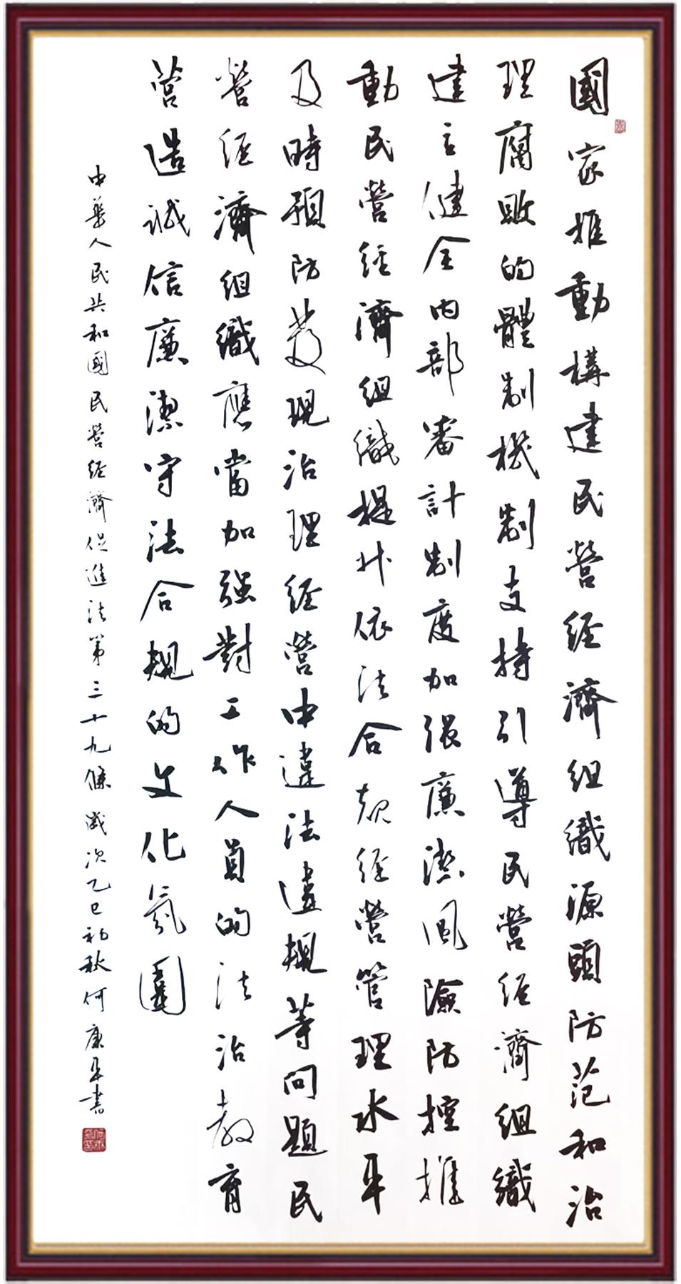 《中華人民共和國(guó)民營(yíng)經(jīng)濟(jì)促進(jìn)法》自今年5月20日起施行。作為我國(guó)首部專門關(guān)于民營(yíng)經(jīng)濟(jì)發(fā)展的基礎(chǔ)性法律,民營(yíng)經(jīng)濟(jì)促進(jìn)法將支持和保障民營(yíng)經(jīng)濟(jì)發(fā)展的法律制度融入中國(guó)特色社會(huì)主義法律體系,具有重大的法治意義,為促進(jìn)民營(yíng)經(jīng)濟(jì)持續(xù)、健康、高質(zhì)量發(fā)展提供了堅(jiān)實(shí)的法治保障。為更好地學(xué)習(xí)、宣傳、貫徹這部法律,法治日?qǐng)?bào)社聯(lián)合司法部普法與依法治理局,開(kāi)展“‘書·法’系列活動(dòng)之書寫《中華人民共和國(guó)民營(yíng)經(jīng)濟(jì)促進(jìn)法》”活動(dòng)。