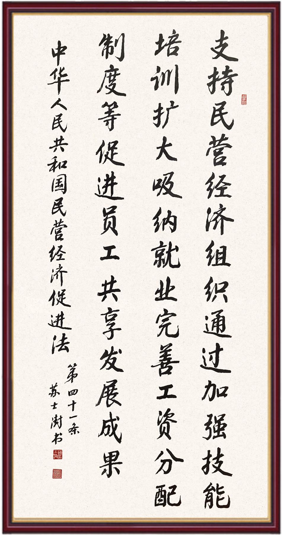 《中華人民共和國民營經(jīng)濟(jì)促進(jìn)法》自今年5月20日起施行。作為我國首部專門關(guān)于民營經(jīng)濟(jì)發(fā)展的基礎(chǔ)性法律,民營經(jīng)濟(jì)促進(jìn)法將支持和保障民營經(jīng)濟(jì)發(fā)展的法律制度融入中國特色社會(huì)主義法律體系,具有重大的法治意義,為促進(jìn)民營經(jīng)濟(jì)持續(xù)、健康、高質(zhì)量發(fā)展提供了堅(jiān)實(shí)的法治保障。為更好地學(xué)習(xí)、宣傳、貫徹這部法律,法治日報(bào)社聯(lián)合司法部普法與依法治理局,開展“‘書·法’系列活動(dòng)之書寫《中華人民共和國民營經(jīng)濟(jì)促進(jìn)法》”活動(dòng)。