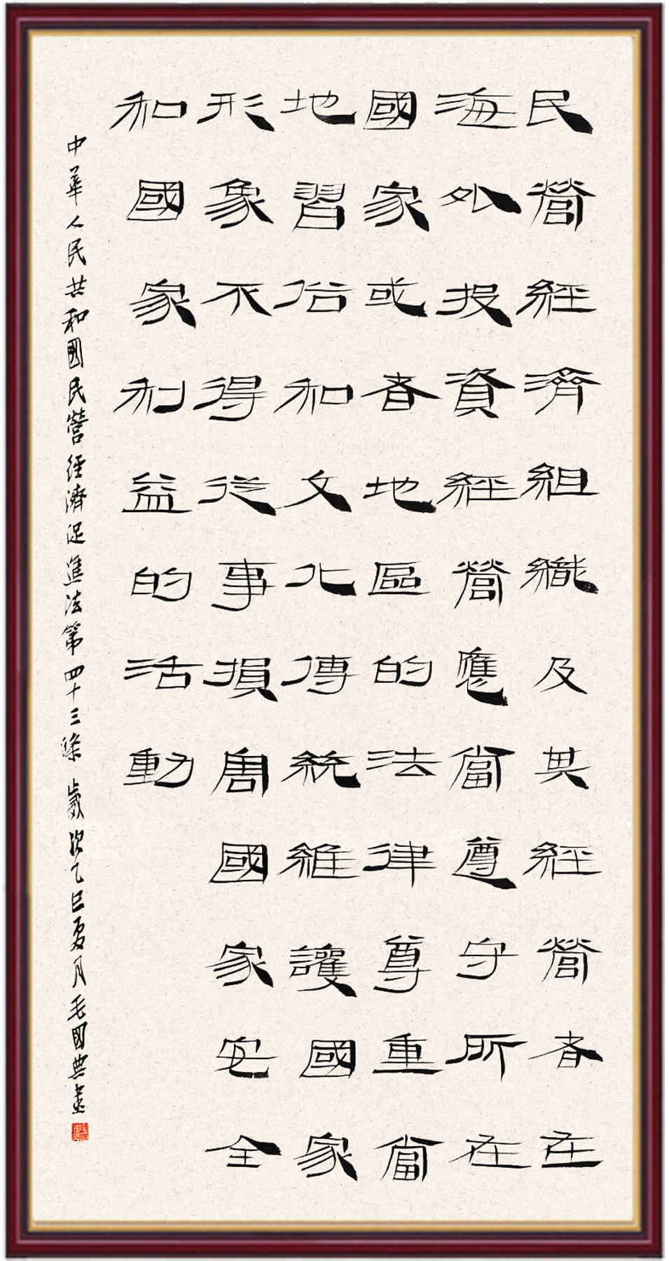 《中華人民共和國民營經(jīng)濟(jì)促進(jìn)法》自今年5月20日起施行。作為我國首部專門關(guān)于民營經(jīng)濟(jì)發(fā)展的基礎(chǔ)性法律,民營經(jīng)濟(jì)促進(jìn)法將支持和保障民營經(jīng)濟(jì)發(fā)展的法律制度融入中國特色社會(huì)主義法律體系,具有重大的法治意義,為促進(jìn)民營經(jīng)濟(jì)持續(xù)、健康、高質(zhì)量發(fā)展提供了堅(jiān)實(shí)的法治保障。為更好地學(xué)習(xí)、宣傳、貫徹這部法律,法治日?qǐng)?bào)社聯(lián)合司法部普法與依法治理局,開展“‘書·法’系列活動(dòng)之書寫《中華人民共和國民營經(jīng)濟(jì)促進(jìn)法》”活動(dòng)。