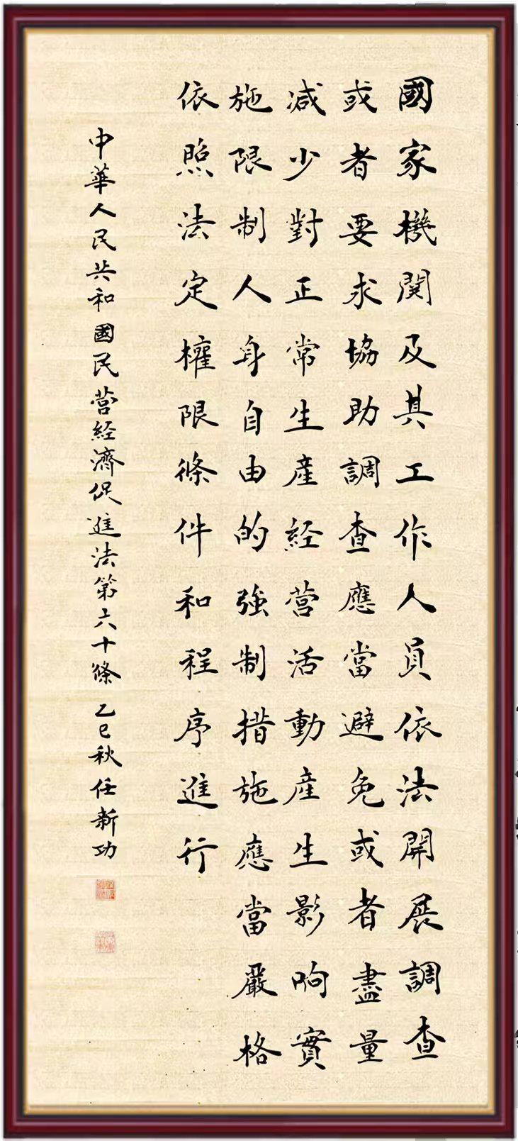 《中華人民共和國民營經(jīng)濟促進法》自今年5月20日起施行。作為我國首部專門關(guān)于民營經(jīng)濟發(fā)展的基礎(chǔ)性法律,民營經(jīng)濟促進法將支持和保障民營經(jīng)濟發(fā)展的法律制度融入中國特色社會主義法律體系,具有重大的法治意義,為促進民營經(jīng)濟持續(xù)、健康、高質(zhì)量發(fā)展提供了堅實的法治保障。為更好地學習、宣傳、貫徹這部法律,法治日報社聯(lián)合司法部普法與依法治理局,開展“‘書·法’系列活動之書寫《中華人民共和國民營經(jīng)濟促進法》”活動。