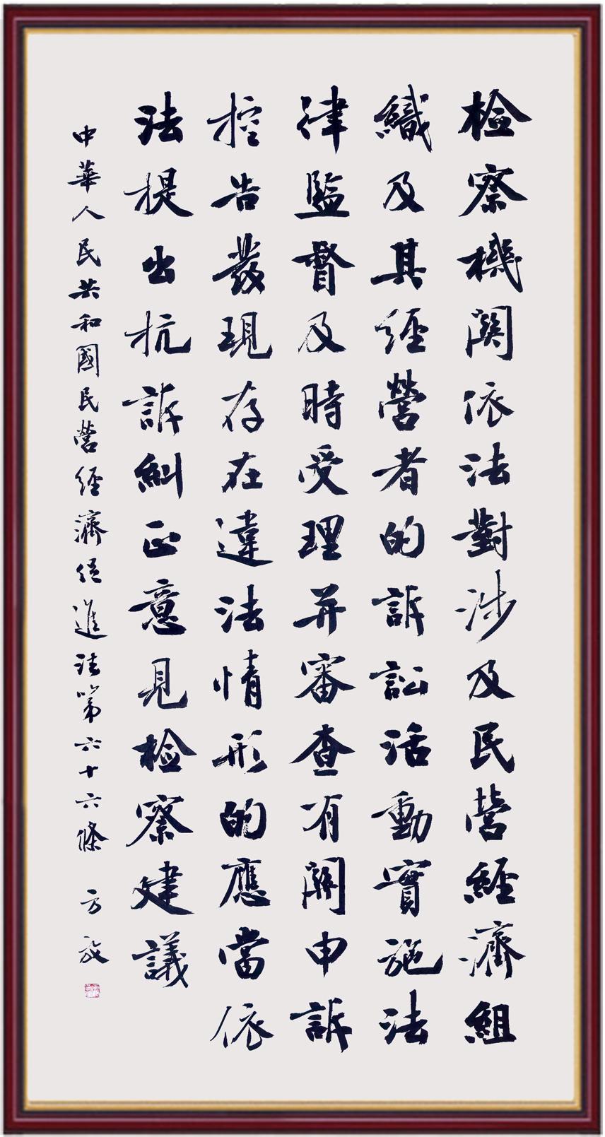 《中華人民共和國民營經(jīng)濟(jì)促進(jìn)法》自今年5月20日起施行。作為我國首部專門關(guān)于民營經(jīng)濟(jì)發(fā)展的基礎(chǔ)性法律,民營經(jīng)濟(jì)促進(jìn)法將支持和保障民營經(jīng)濟(jì)發(fā)展的法律制度融入中國特色社會(huì)主義法律體系,具有重大的法治意義,為促進(jìn)民營經(jīng)濟(jì)持續(xù)、健康、高質(zhì)量發(fā)展提供了堅(jiān)實(shí)的法治保障。為更好地學(xué)習(xí)、宣傳、貫徹這部法律,法治日報(bào)社聯(lián)合司法部普法與依法治理局,開展“‘書·法’系列活動(dòng)之書寫《中華人民共和國民營經(jīng)濟(jì)促進(jìn)法》”活動(dòng)。