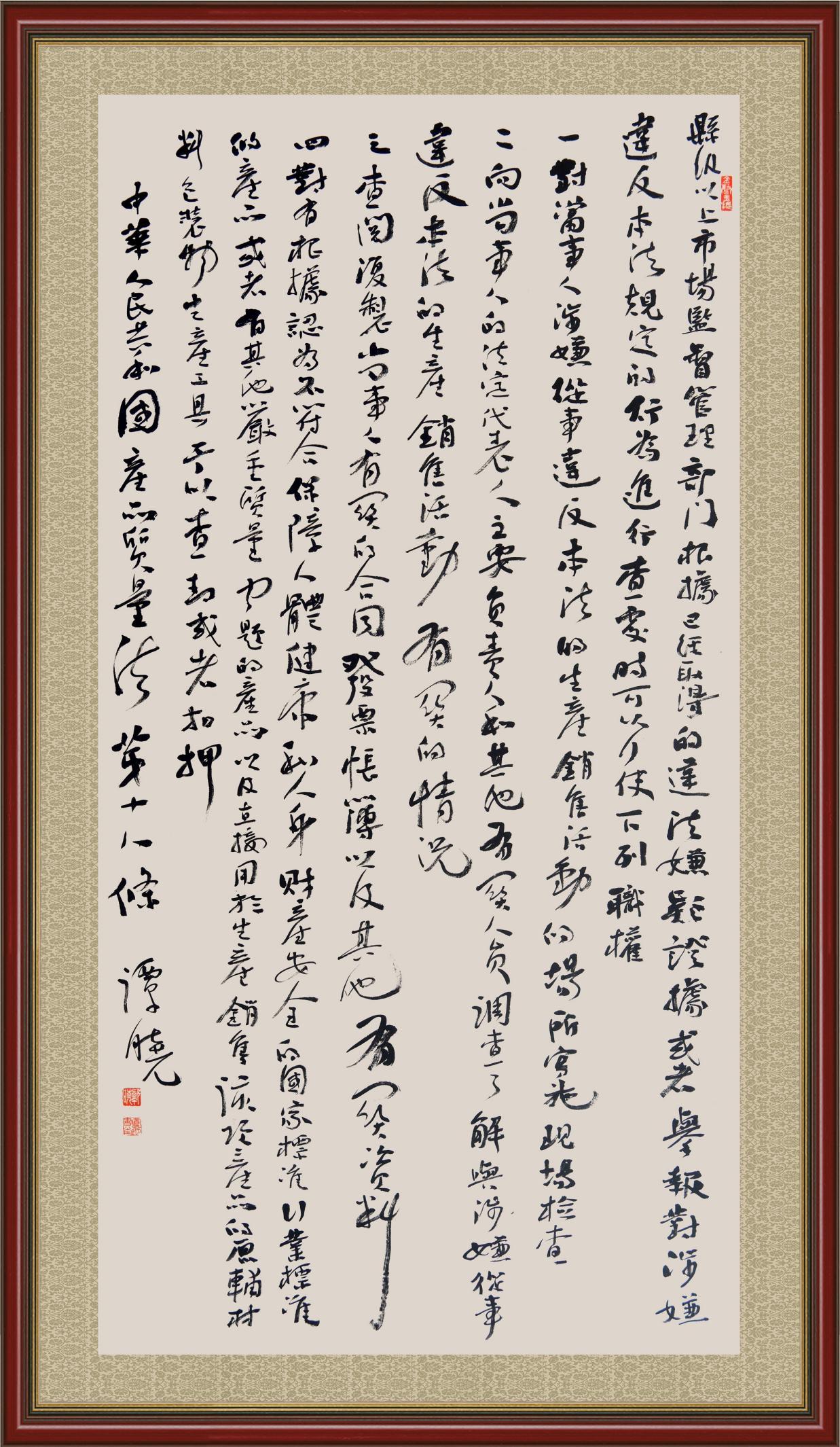 《中華人民共和國產(chǎn)品質(zhì)量法》自1993年9月1日起開始施行,先后進行三次修正。作為產(chǎn)品質(zhì)量領域的基本法律,產(chǎn)品質(zhì)量法對規(guī)范產(chǎn)品質(zhì)量管理、維護消費者合法權(quán)益、促進經(jīng)濟社會發(fā)展具有重要意義。為更好地學習、宣傳、貫徹這部法律,在國家市場監(jiān)督管理總局法規(guī)司的支持下,法治日報社開展了“‘書·法’系列活動之書寫《中華人民共和國產(chǎn)品質(zhì)量法》”活動。