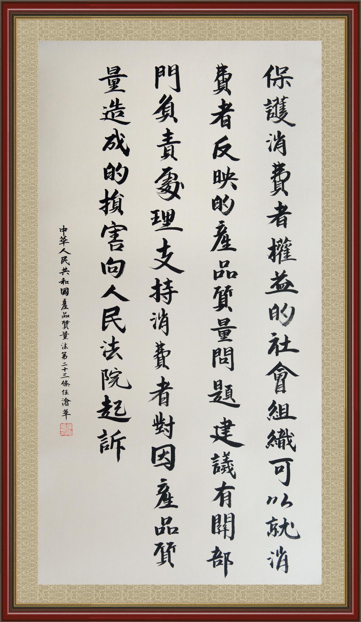 《中華人民共和國產(chǎn)品質(zhì)量法》自1993年9月1日起開始施行,先后進行三次修正。作為產(chǎn)品質(zhì)量領(lǐng)域的基本法律,產(chǎn)品質(zhì)量法對規(guī)范產(chǎn)品質(zhì)量管理、維護消費者合法權(quán)益、促進經(jīng)濟社會發(fā)展具有重要意義。為更好地學(xué)習(xí)、宣傳、貫徹這部法律,在國家市場監(jiān)督管理總局法規(guī)司的支持下,法治日報社開展了“‘書·法’系列活動之書寫《中華人民共和國產(chǎn)品質(zhì)量法》”活動。