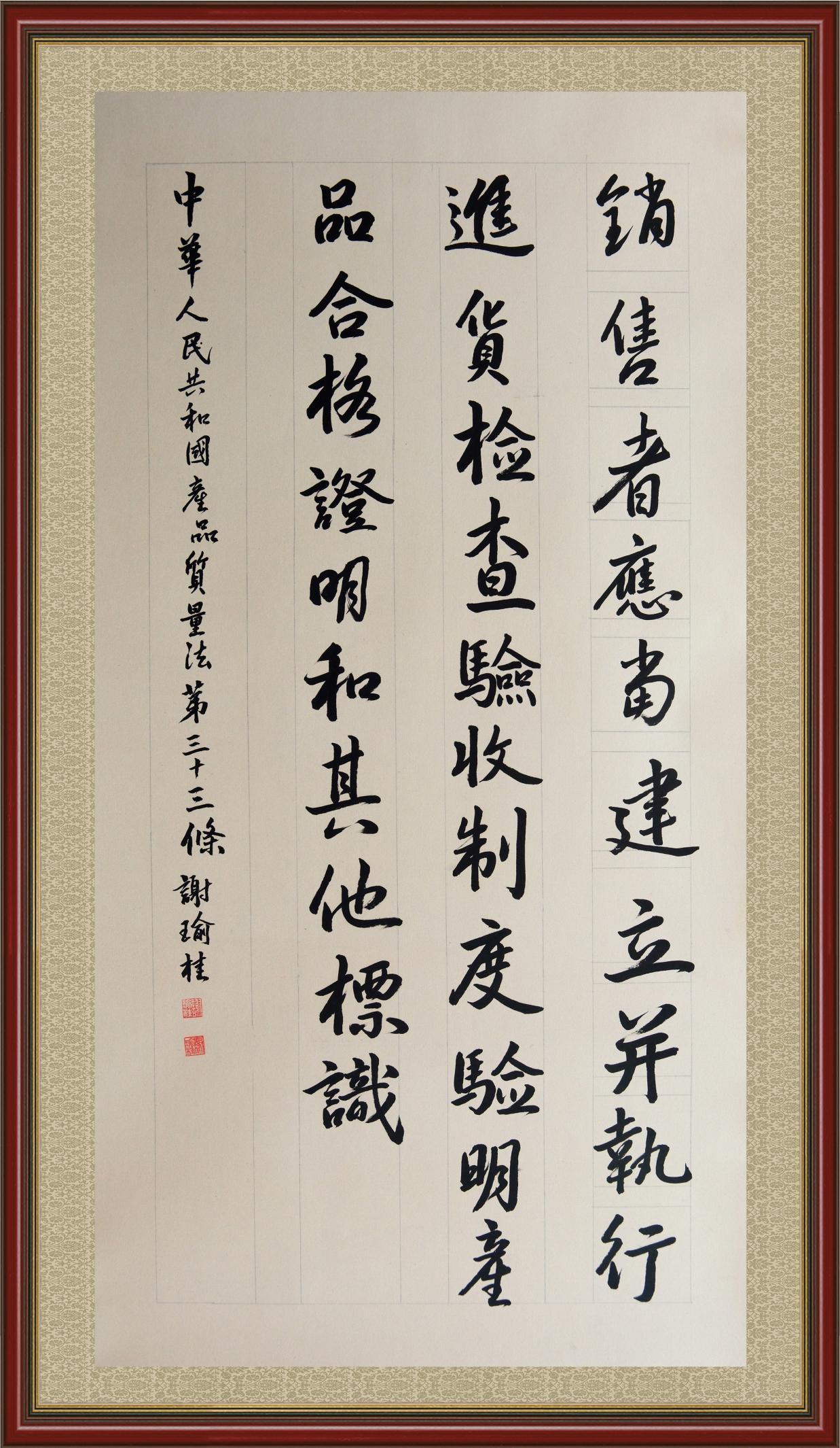 《中華人民共和國(guó)產(chǎn)品質(zhì)量法》自1993年9月1日起開始施行,先后進(jìn)行三次修正。作為產(chǎn)品質(zhì)量領(lǐng)域的基本法律,產(chǎn)品質(zhì)量法對(duì)規(guī)范產(chǎn)品質(zhì)量管理、維護(hù)消費(fèi)者合法權(quán)益、促進(jìn)經(jīng)濟(jì)社會(huì)發(fā)展具有重要意義。為更好地學(xué)習(xí)、宣傳、貫徹這部法律,在國(guó)家市場(chǎng)監(jiān)督管理總局法規(guī)司的支持下,法治日?qǐng)?bào)社開展了“‘書·法’系列活動(dòng)之書寫《中華人民共和國(guó)產(chǎn)品質(zhì)量法》”活動(dòng)。