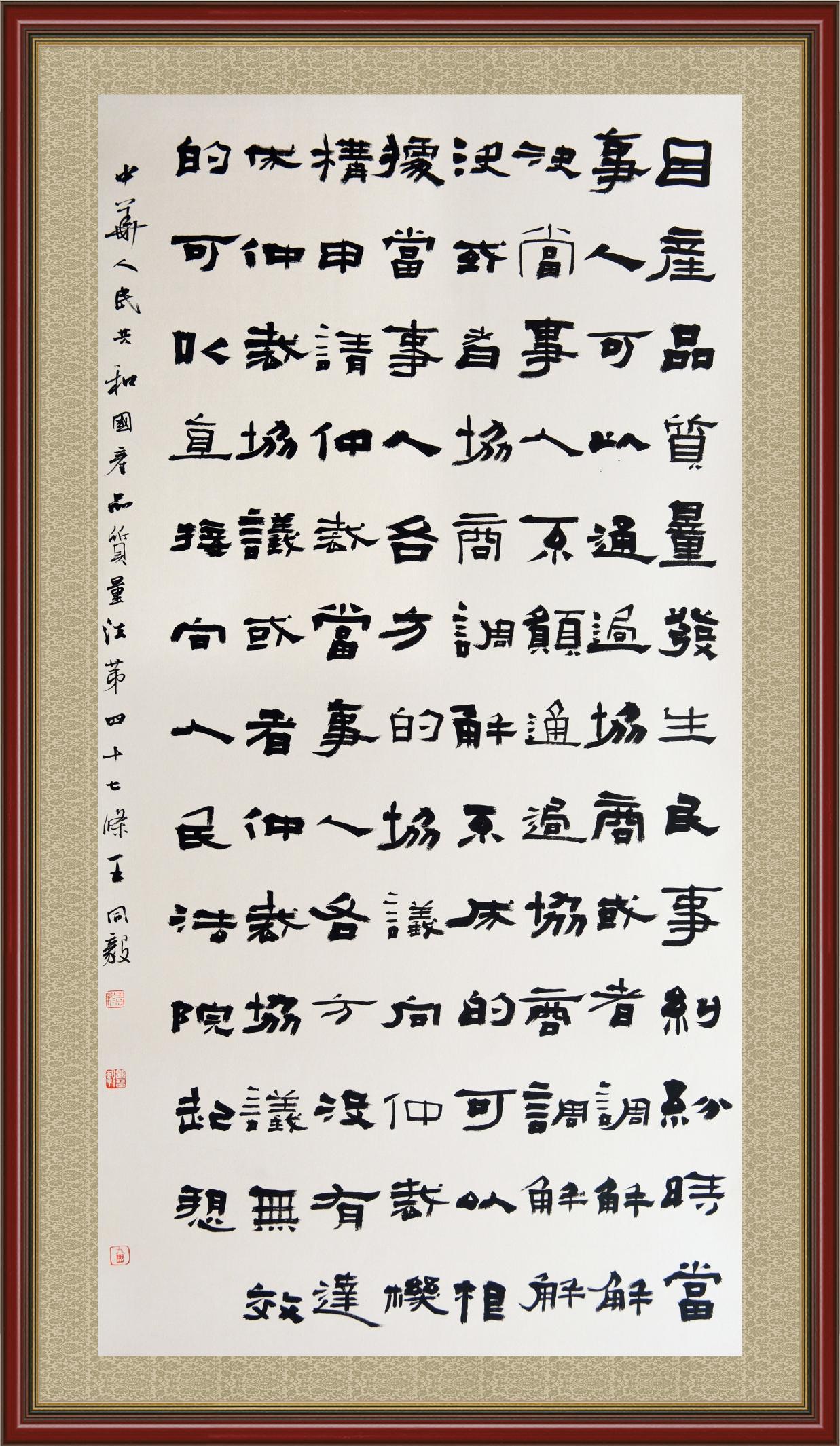 《中華人民共和國產(chǎn)品質(zhì)量法》自1993年9月1日起開始施行,先后進行三次修正。作為產(chǎn)品質(zhì)量領(lǐng)域的基本法律,產(chǎn)品質(zhì)量法對規(guī)范產(chǎn)品質(zhì)量管理、維護消費者合法權(quán)益、促進經(jīng)濟社會發(fā)展具有重要意義。為更好地學(xué)習(xí)、宣傳、貫徹這部法律,在國家市場監(jiān)督管理總局法規(guī)司的支持下,法治日報社開展了“‘書·法’系列活動之書寫《中華人民共和國產(chǎn)品質(zhì)量法》”活動。