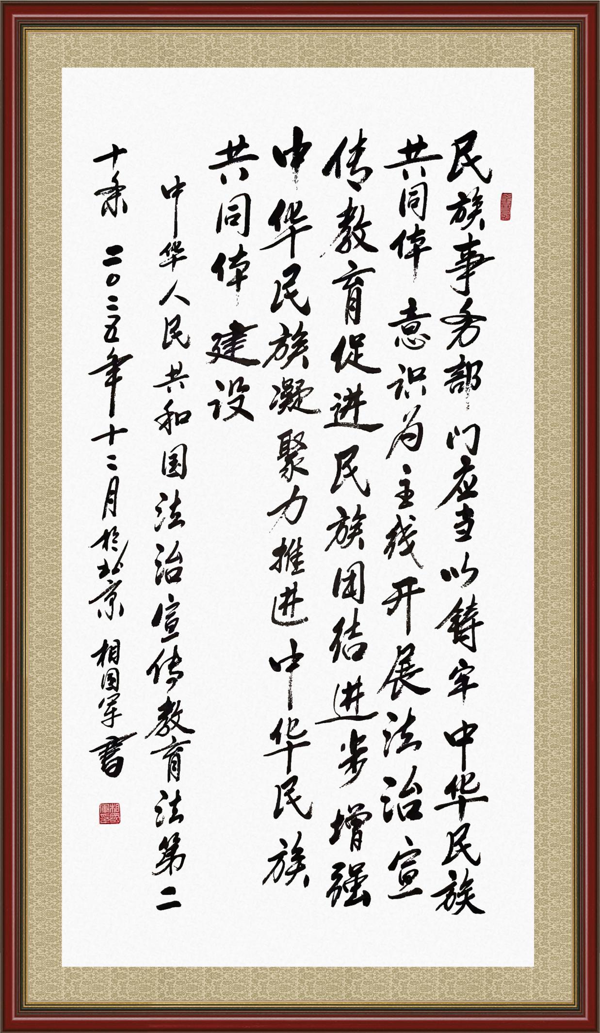 《中華人民共和國法治宣傳教育法》自2025年11月1日起開始施行。法治宣傳教育是全面依法治國的長(zhǎng)期基礎(chǔ)性工作。法治宣傳教育法對(duì)提升全民法治素養(yǎng)和社會(huì)治理法治化水平、推動(dòng)建設(shè)更高水平的社會(huì)主義法治國家具有重要意義。為更好地學(xué)習(xí)、宣傳、貫徹這部法律,法治日?qǐng)?bào)社聯(lián)合司法部普法與依法治理局,開展了“‘書·法’系列活動(dòng)之書寫《中華人民共和國法治宣傳教育法》”活動(dòng)。