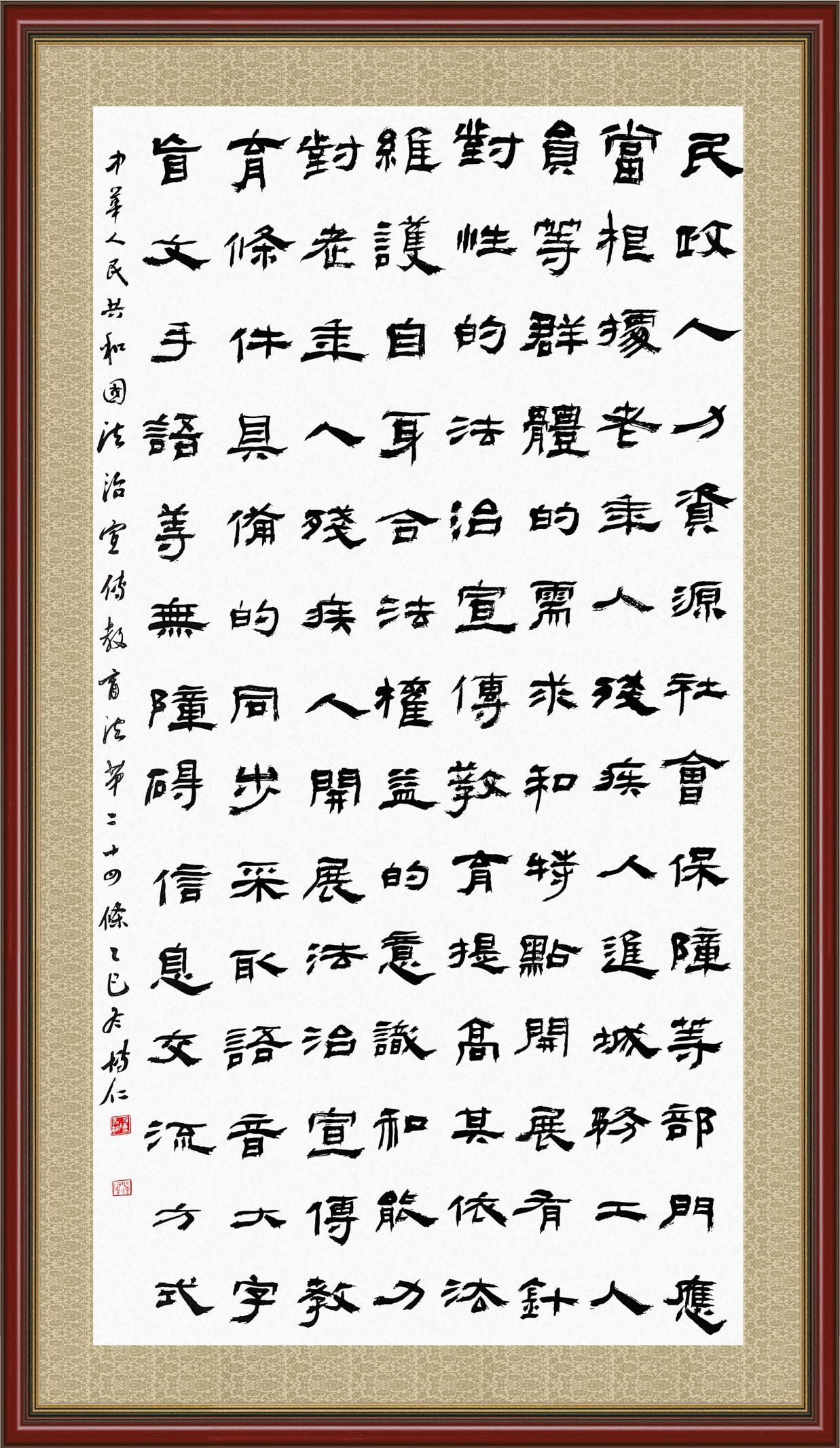 2020年7月11日,由法治日?qǐng)?bào)社主辦的“書·法”系列活動(dòng)正式啟動(dòng),先后書寫《中華人民共和國民法典》《中華人民共和國憲法》《中華人民共和國民營經(jīng)濟(jì)促進(jìn)法》等21部法律法規(guī)。