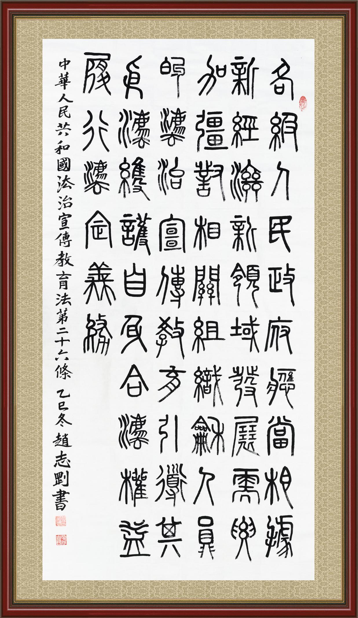 2020年7月11日,由法治日報社主辦的“書·法”系列活動正式啟動,先后書寫《中華人民共和國民法典》《中華人民共和國憲法》《中華人民共和國民營經(jīng)濟促進法》等21部法律法規(guī)。