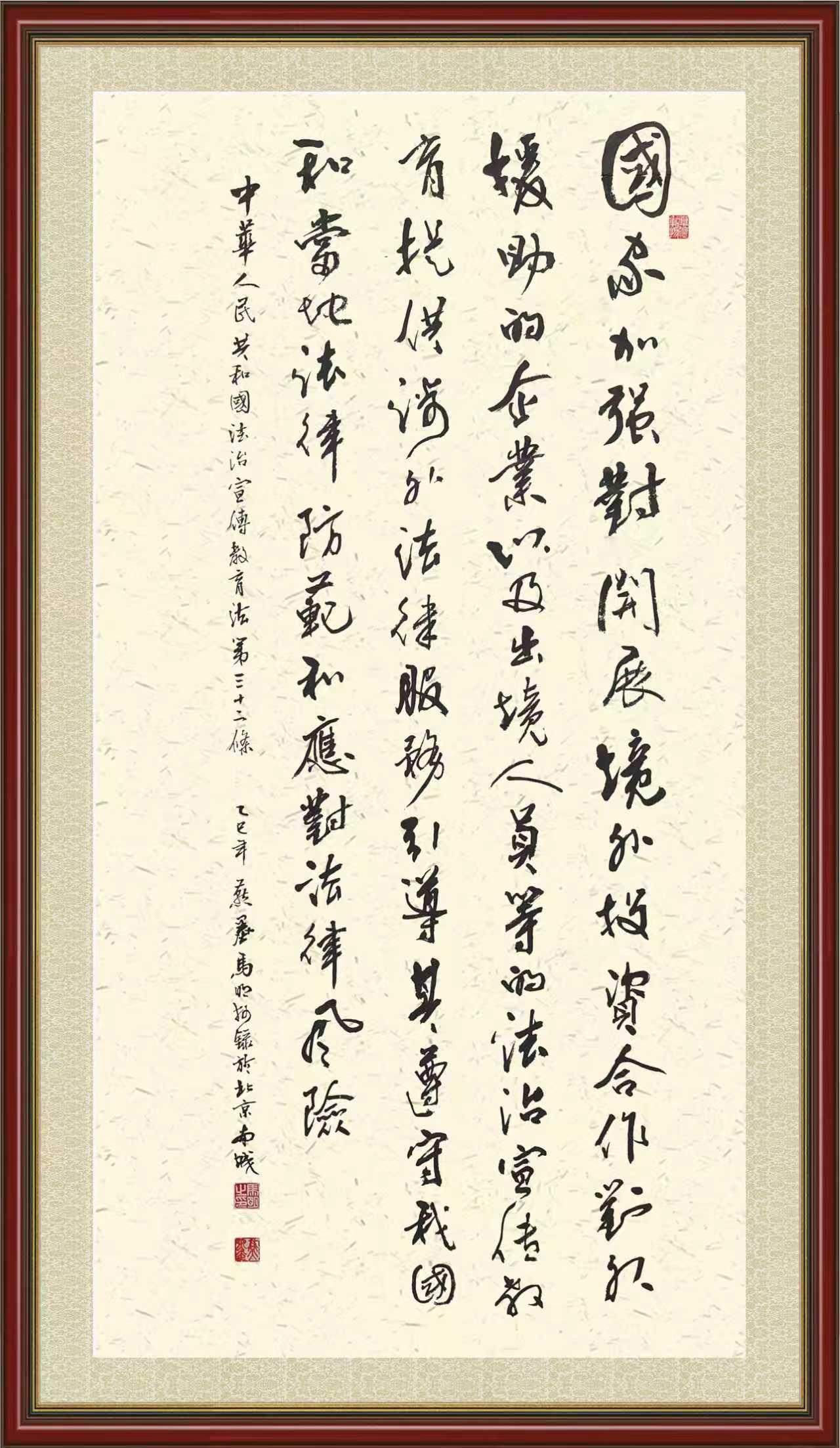 2020年7月11日,由法治日?qǐng)?bào)社主辦的“書·法”系列活動(dòng)正式啟動(dòng),先后書寫《中華人民共和國(guó)民法典》《中華人民共和國(guó)憲法》《中華人民共和國(guó)民營(yíng)經(jīng)濟(jì)促進(jìn)法》等21部法律法規(guī)。