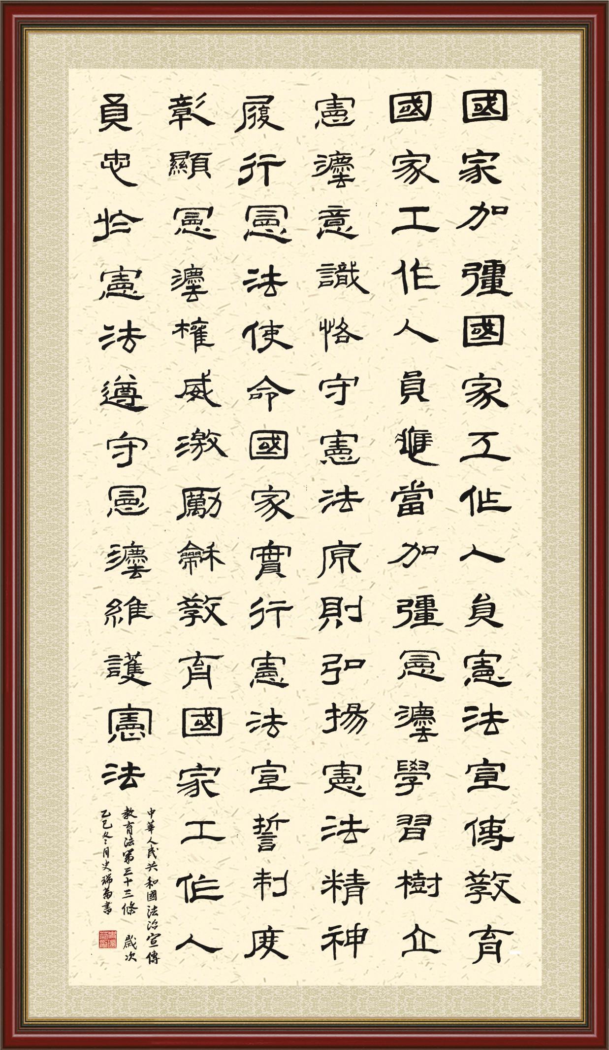 2020年7月11日,由法治日?qǐng)?bào)社主辦的“書·法”系列活動(dòng)正式啟動(dòng),先后書寫《中華人民共和國民法典》《中華人民共和國憲法》《中華人民共和國民營經(jīng)濟(jì)促進(jìn)法》等21部法律法規(guī)。