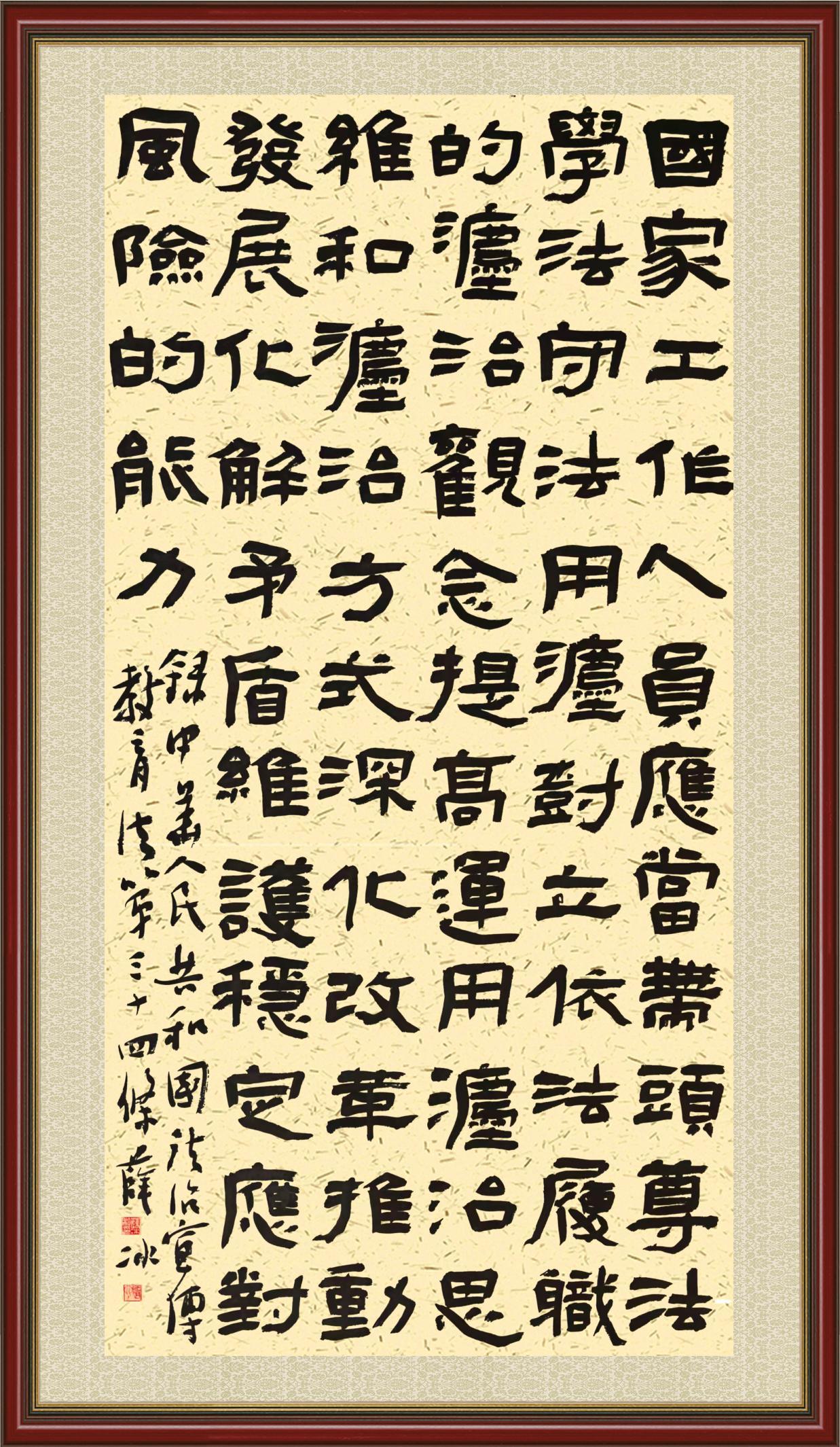 《中華人民共和國(guó)法治宣傳教育法》自2025年11月1日起開始施行。法治宣傳教育是全面依法治國(guó)的長(zhǎng)期基礎(chǔ)性工作。法治宣傳教育法對(duì)提升全民法治素養(yǎng)和社會(huì)治理法治化水平、推動(dòng)建設(shè)更高水平的社會(huì)主義法治國(guó)家具有重要意義。為更好地學(xué)習(xí)、宣傳、貫徹這部法律,法治日?qǐng)?bào)社聯(lián)合司法部普法與依法治理局,開展了“‘書·法’系列活動(dòng)之書寫《中華人民共和國(guó)法治宣傳教育法》”活動(dòng)。