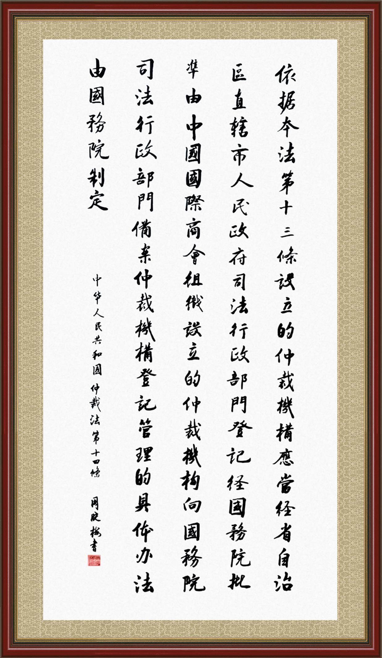 經國務院批準由中國國際商會組織設立的仲裁機構向國務院司法行政部門備案。
