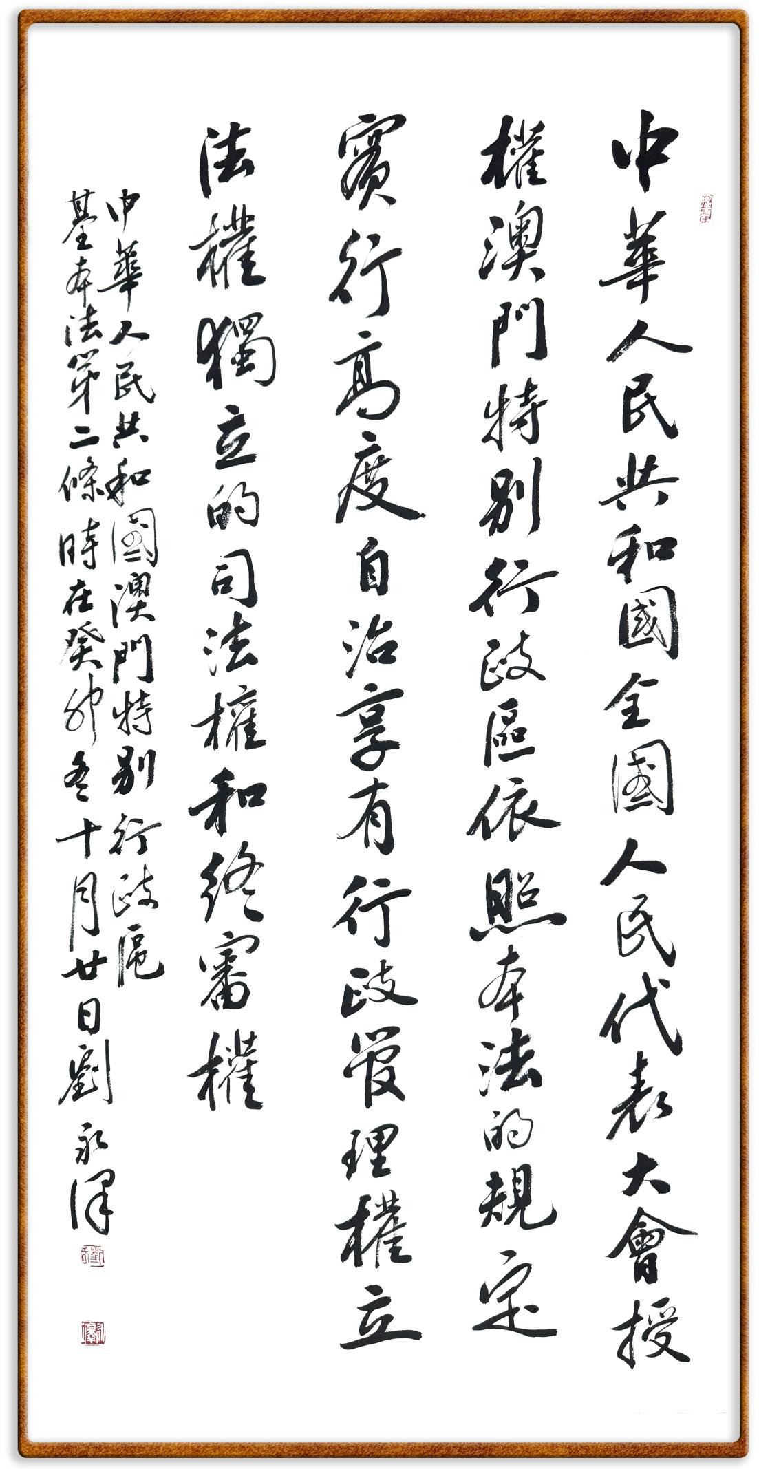 書·法|劉永澤:澳門基本法第二條