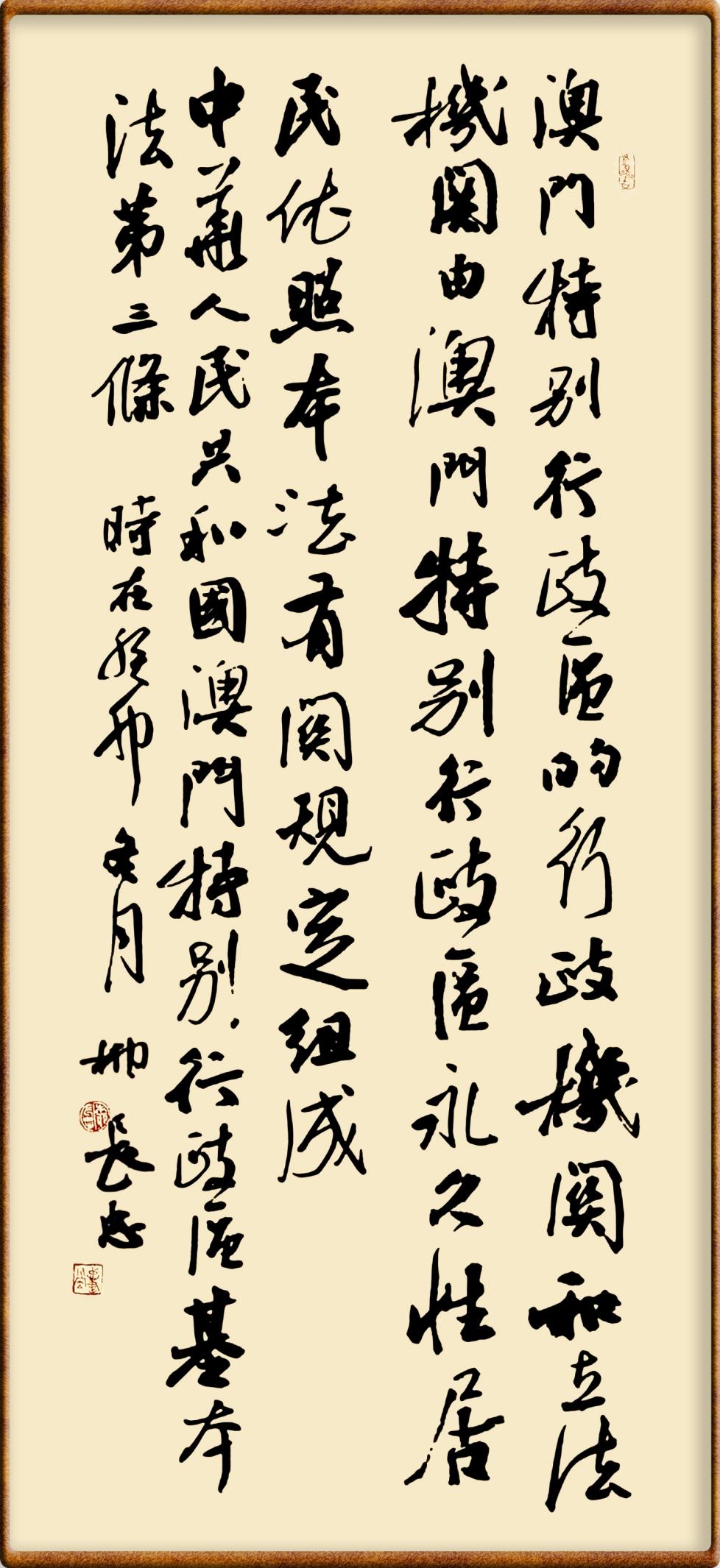 書·法|柳長忠:澳門基本法第三條