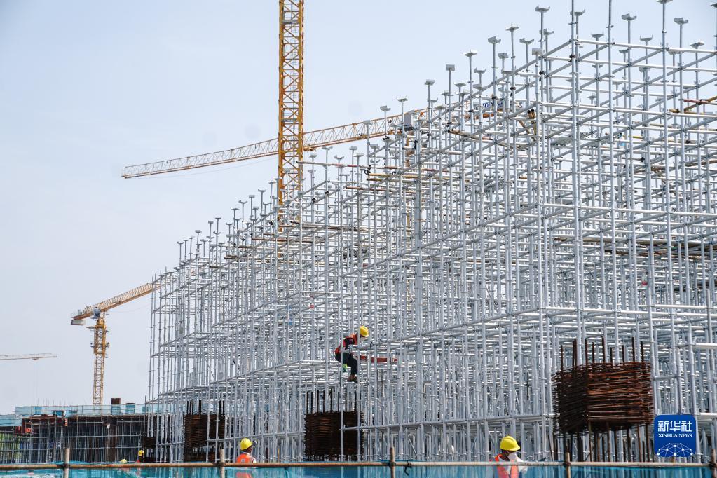 中建三局華東公司上海分公司的工人在位于上海的華為青浦研發(fā)中心項目工地上作業(yè)(2022年6月15日攝)。新華社記者 丁汀 攝