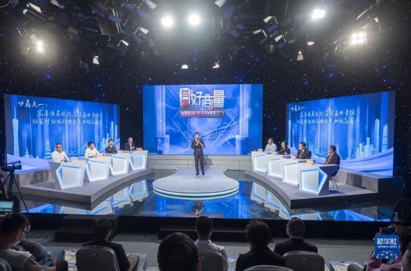 政協(xié)委員、政府部門代表、物業(yè)代表等在廣州市政協(xié)“有事好商量”民生實事協(xié)商平臺,圍繞加強裝修垃圾管理議題展開協(xié)商(2021年11月19日攝)。新華社發(fā)(莊小龍 攝)