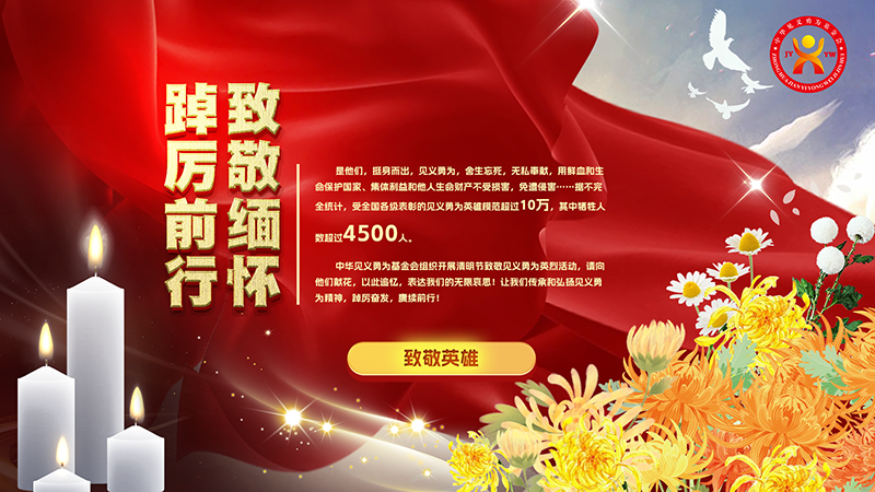 英雄們的行為和崇高精神為全社會作出了表率,樹立了榜樣,我們將一直銘記在心。此次清明節(jié)活動,請大家積極參與,向見義勇為獻(xiàn)出寶貴生命的英烈和犧牲人員網(wǎng)絡(luò)獻(xiàn)花,以此追憶,表達(dá)我們的無限哀思。讓我們踔厲奮發(fā)、賡續(xù)前行,以實際行動傳承和弘揚(yáng)見義勇為精神,倡導(dǎo)見義勇為的社會風(fēng)尚,讓全社會正氣充盈、邪不可干,為建設(shè)更高水平平安中國、法治中國而奮斗。