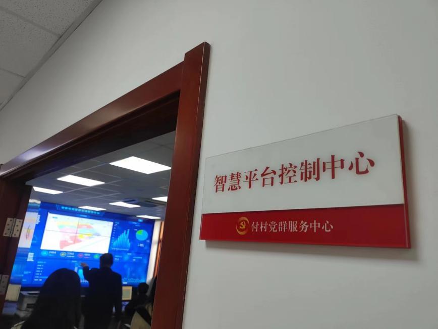 “各位現(xiàn)在看到的就是電腦端的一個(gè)界面,屏幕的中間是我們付村的一個(gè)平面圖,下面展示的是人口組成……”在付村的智慧平臺(tái)控制中心,工作人員站在一塊藍(lán)色屏幕前對(duì)記者進(jìn)行講解。