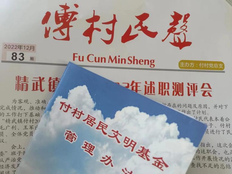 圖為付村村報(bào)與《付村居民文明基金管理辦法》