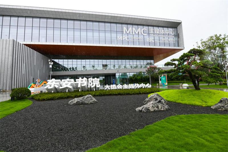 主媒體中心北鄰東安湖,與開(kāi)幕式場(chǎng)館東安湖體育公園主體育場(chǎng)及火炬塔隔湖相望。來(lái)自世界各地的記者將在此開(kāi)展大運(yùn)會(huì)采訪報(bào)道工作,國(guó)際大體聯(lián)新聞委員會(huì)辦公室也設(shè)在這里。