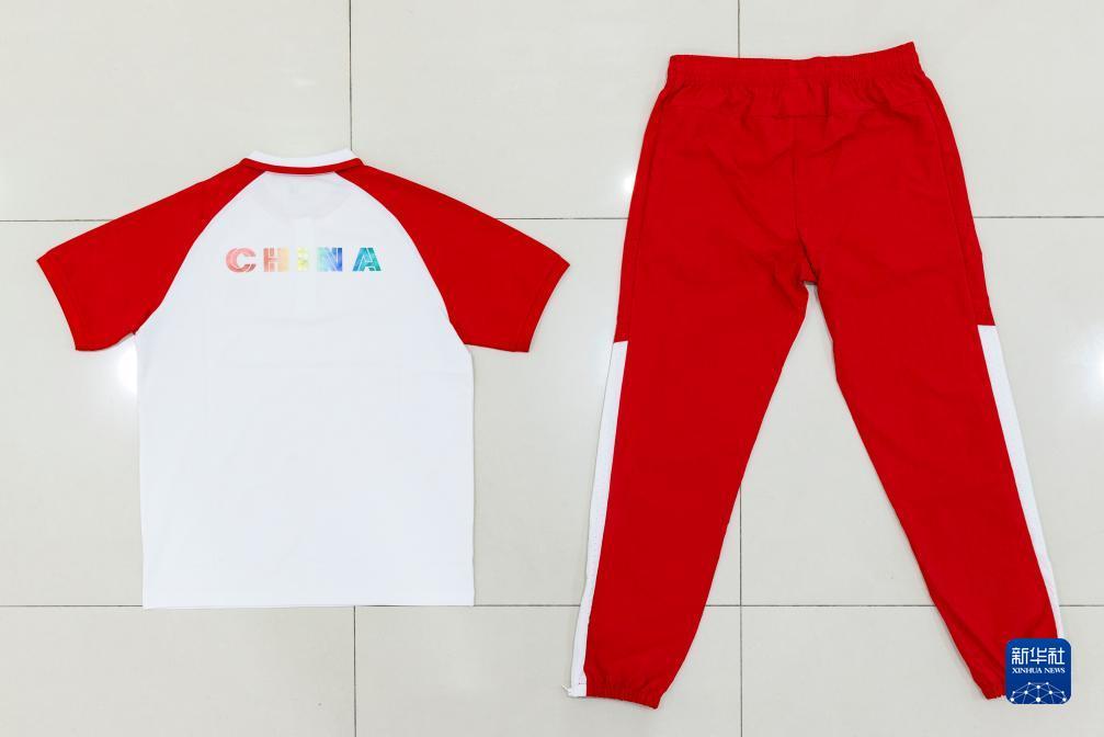 這是7月24日拍攝的第31屆世界大學生夏季運動會中國代表團成員配發(fā)裝備中的POLO短T恤衫和長褲。新華社記者 沈伯韓 攝