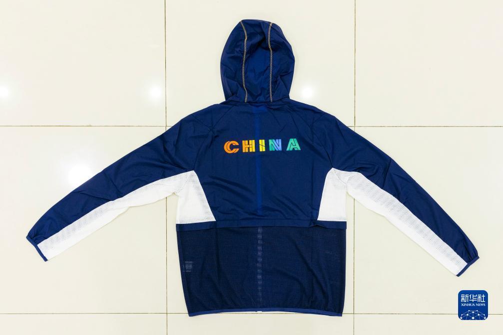 這是7月24日拍攝的第31屆世界大學生夏季運動會中國代表團成員配發(fā)裝備中的梭織單層夾克。新華社記者 沈伯韓 攝