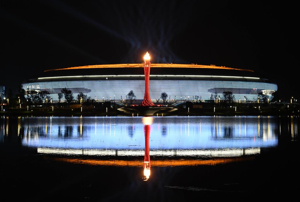 這是7月28日拍攝的成都大運(yùn)會(huì)主火炬。新華社記者張端攝