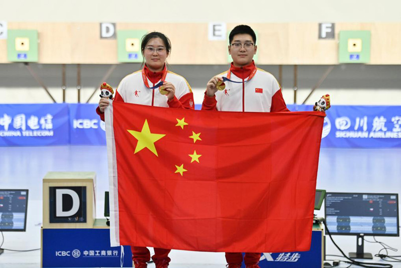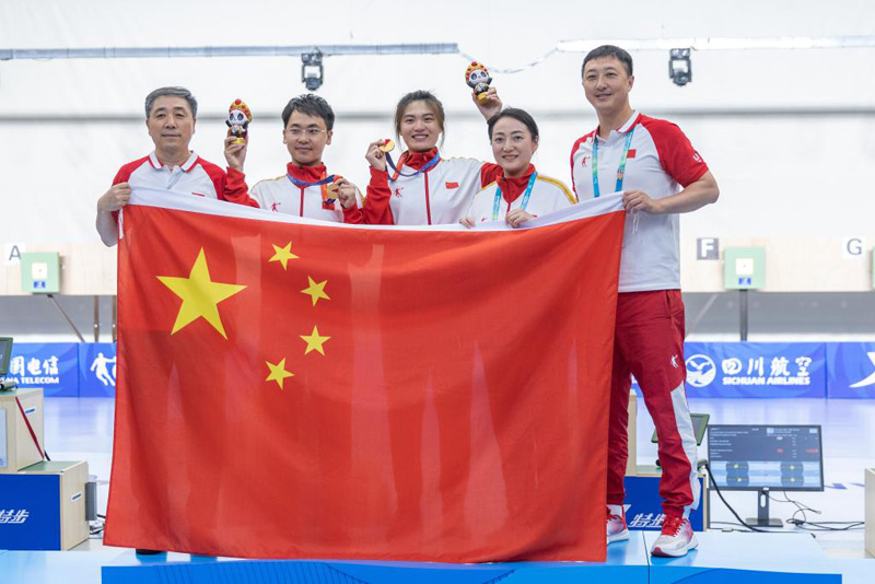 新華社成都8月2日電(記者黃耀漫、王春燕、田光雨)成都大運會射擊項目2日收官。充滿懸念的賽制、實力相當的對陣、中國隊的機會,這些元素組合在一起,令當天的兩場團體決賽顯得格外刺激。最終中國隊選手頂住壓力,包攬10米氣步槍和10米氣手槍混合團體兩枚金牌,為他們的成都大運會之旅畫上圓滿的句號。