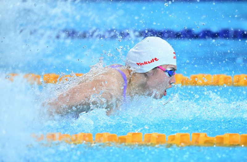 8月2日,張雨霏在決賽中。當日,在成都舉行的第31屆世界大學(xué)生夏季運動會女子50米蝶泳決賽中,中國選手張雨霏以25秒20的成績獲得冠軍。新華社記者 陳澤國 攝